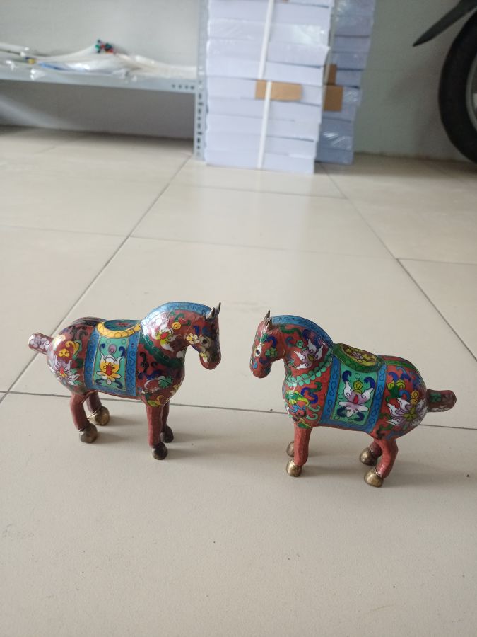 Cặp ngựa pháp lam xưa lành tít. Chất liệu : đồng tráng men.