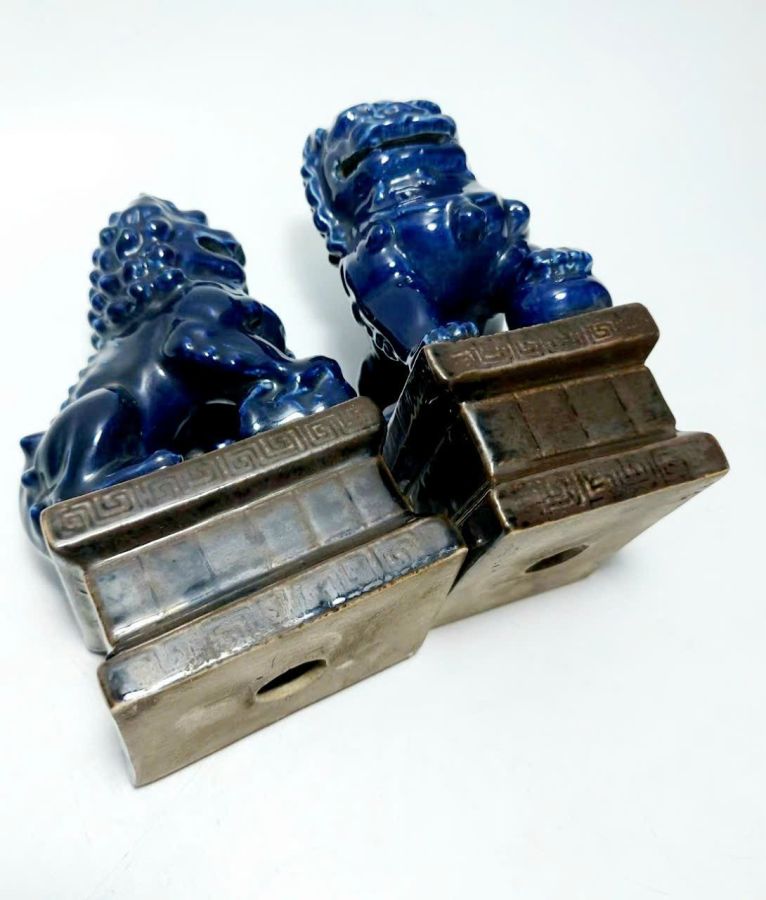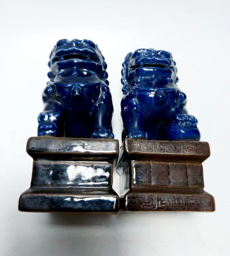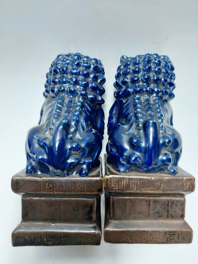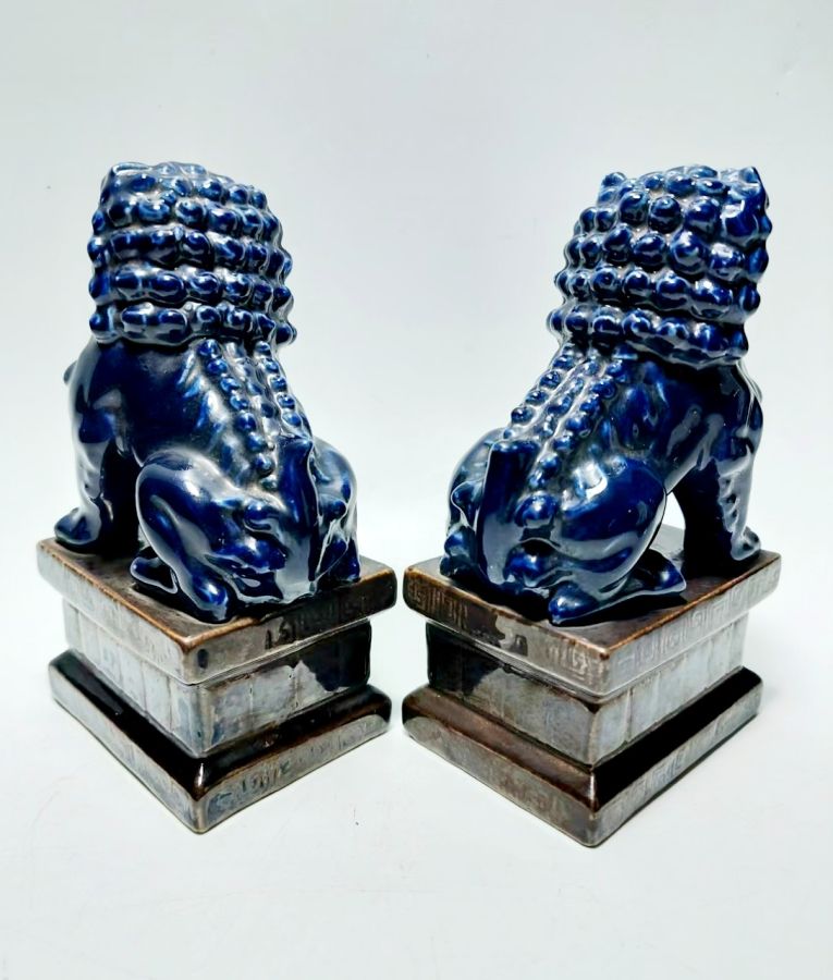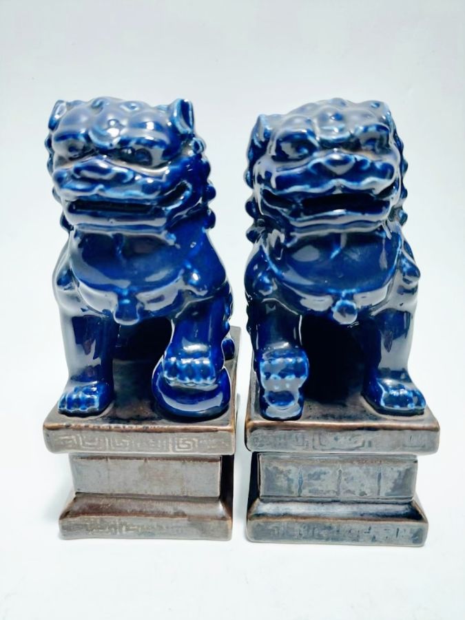 Cặp sư tử sứ tàu cũ.Cao 14,5cm*8,5cm. 1100k