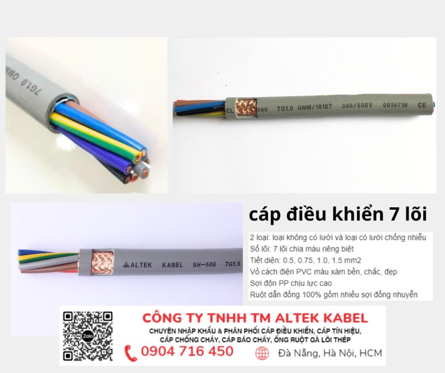 Thông tin về Cáp điều khiển 7 lõi 7x0.5, 7x0.75, 7x1.