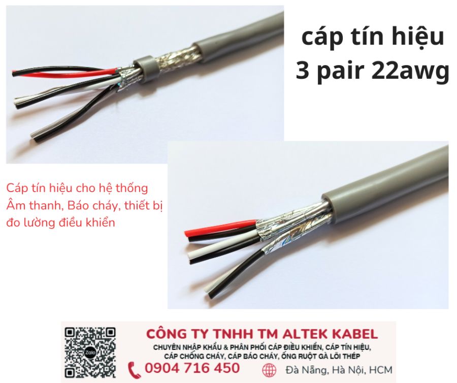 Cáp tín hiệu vặn xoắn chống nhiễu Audio/ Control/ Instrument Cable ALTEK KABEL 22AWG, 3 Pair AL foil (1 lớp chống nhiễu)