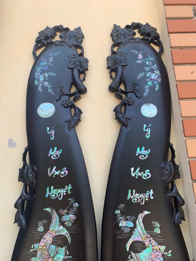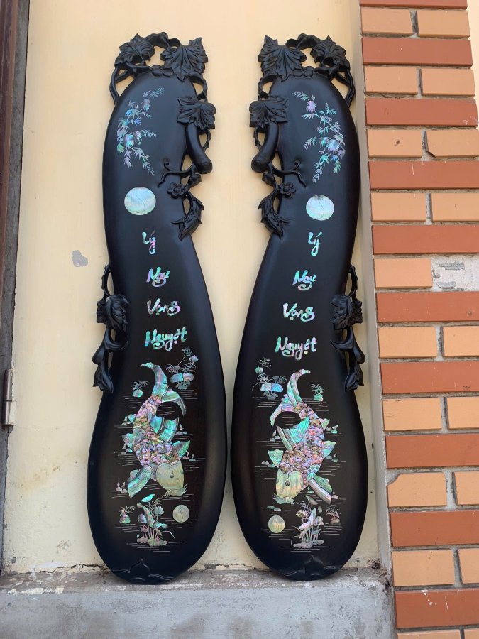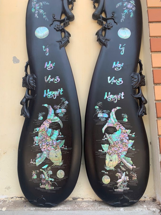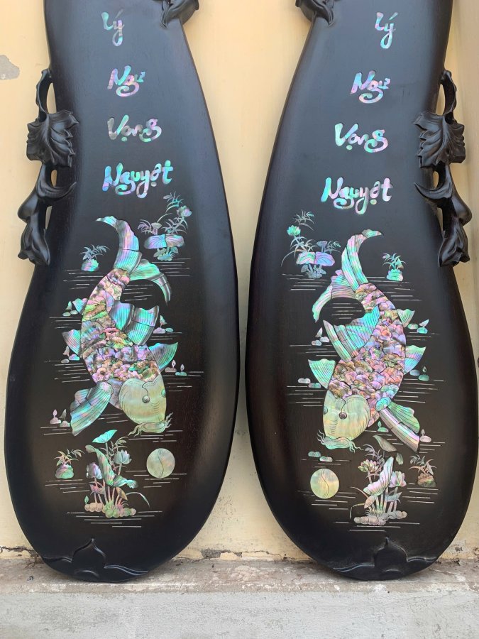 Cặp tranh cá lý ngư vọng Nguyệt gỗ gụ Kt 1m17-27 Khảm ốc