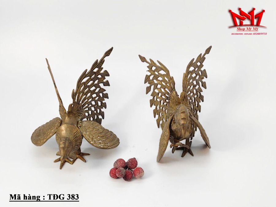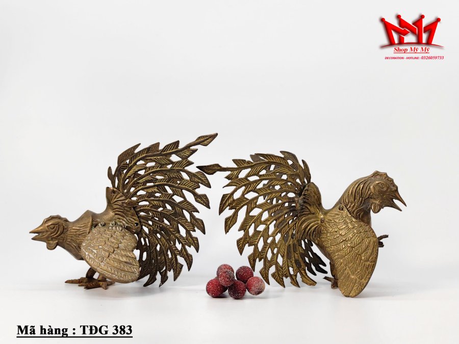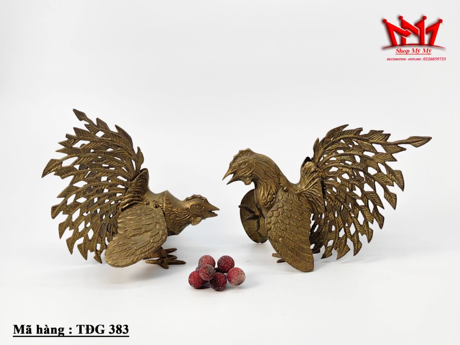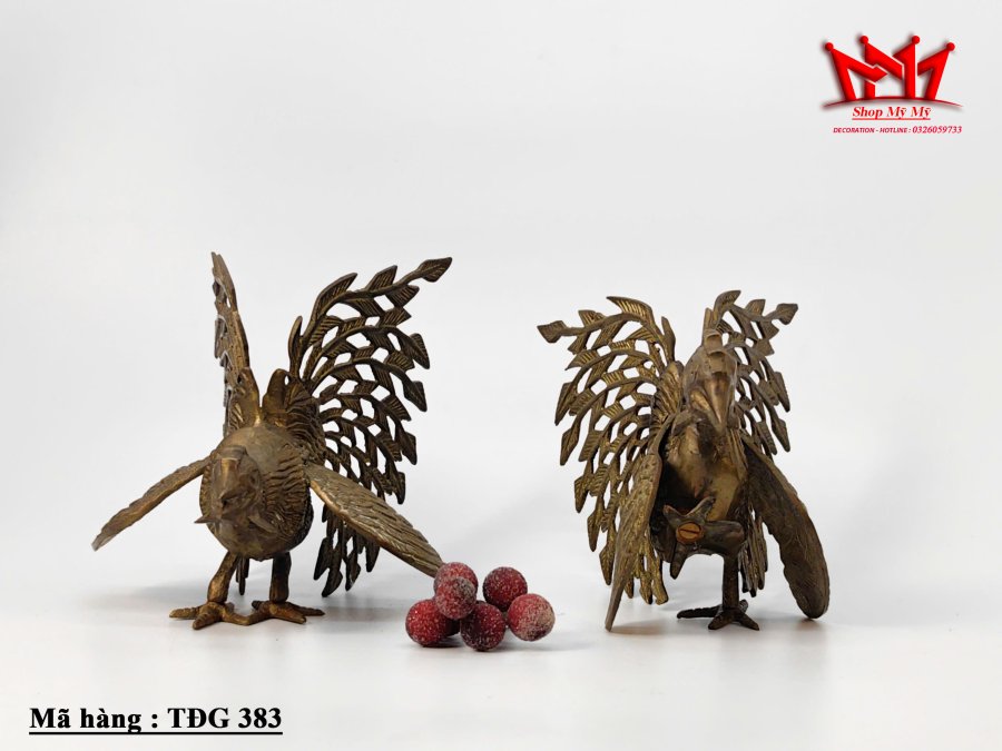 Cặp tượng gà chọi bằng đồng xưa , hàng trang trí sưu tầm