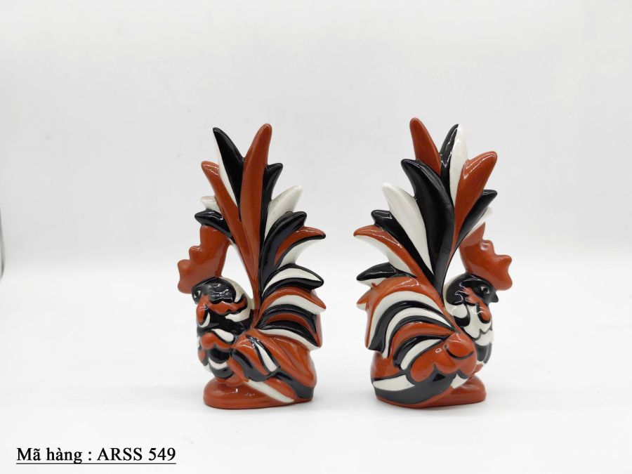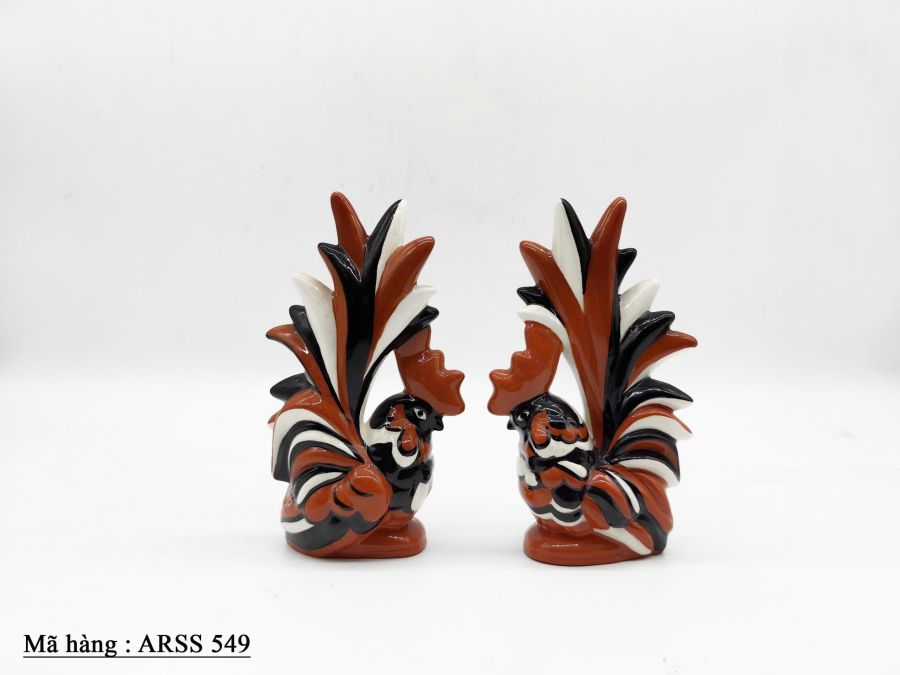 Cặp tượng gà trưng bày trang trí bằng sứ