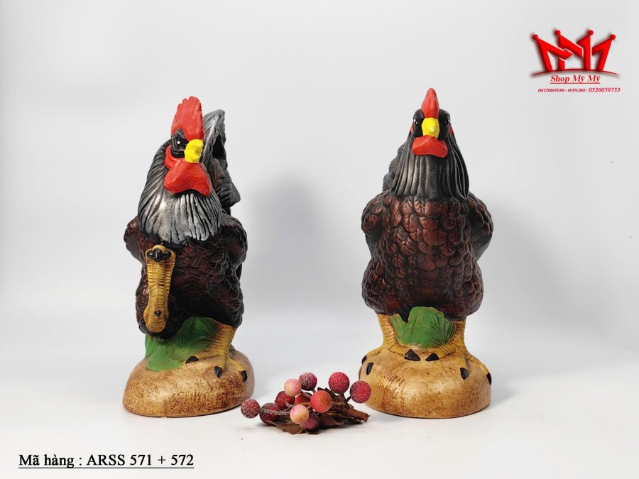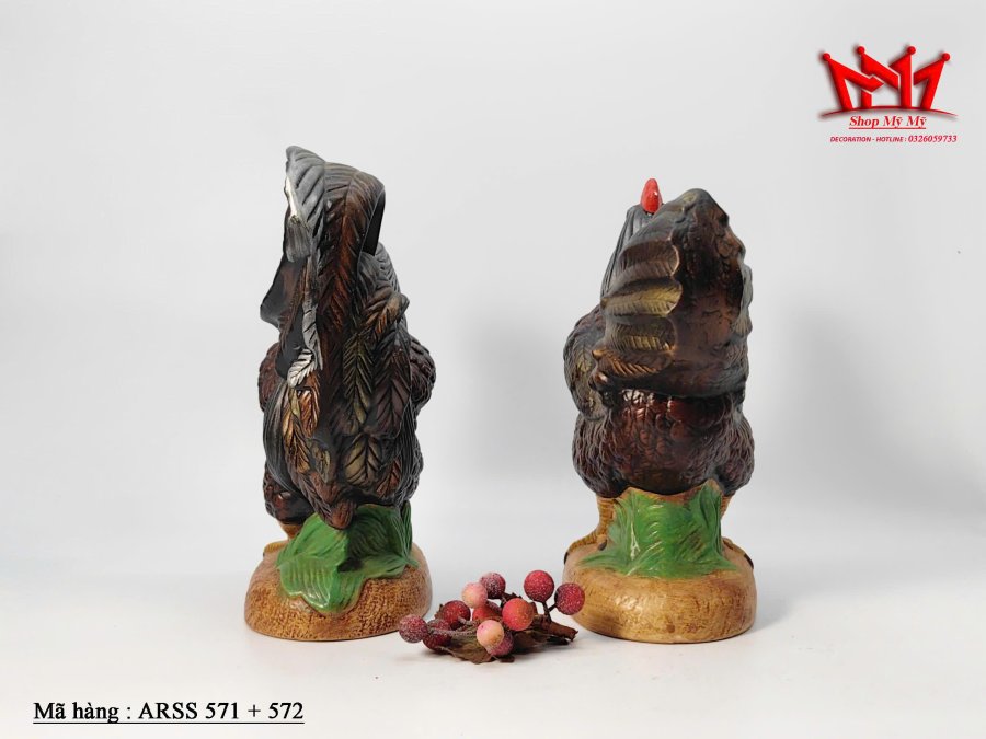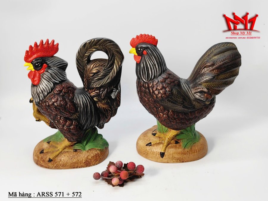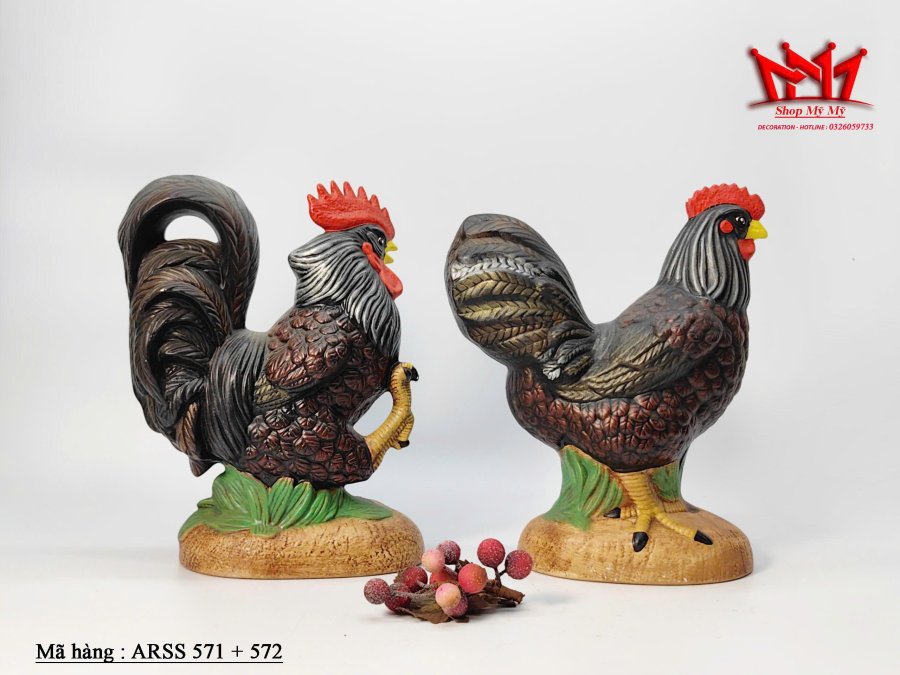 Cặp tượng trang trí hình cặp gà trống làm bằng sứ