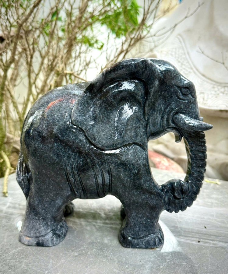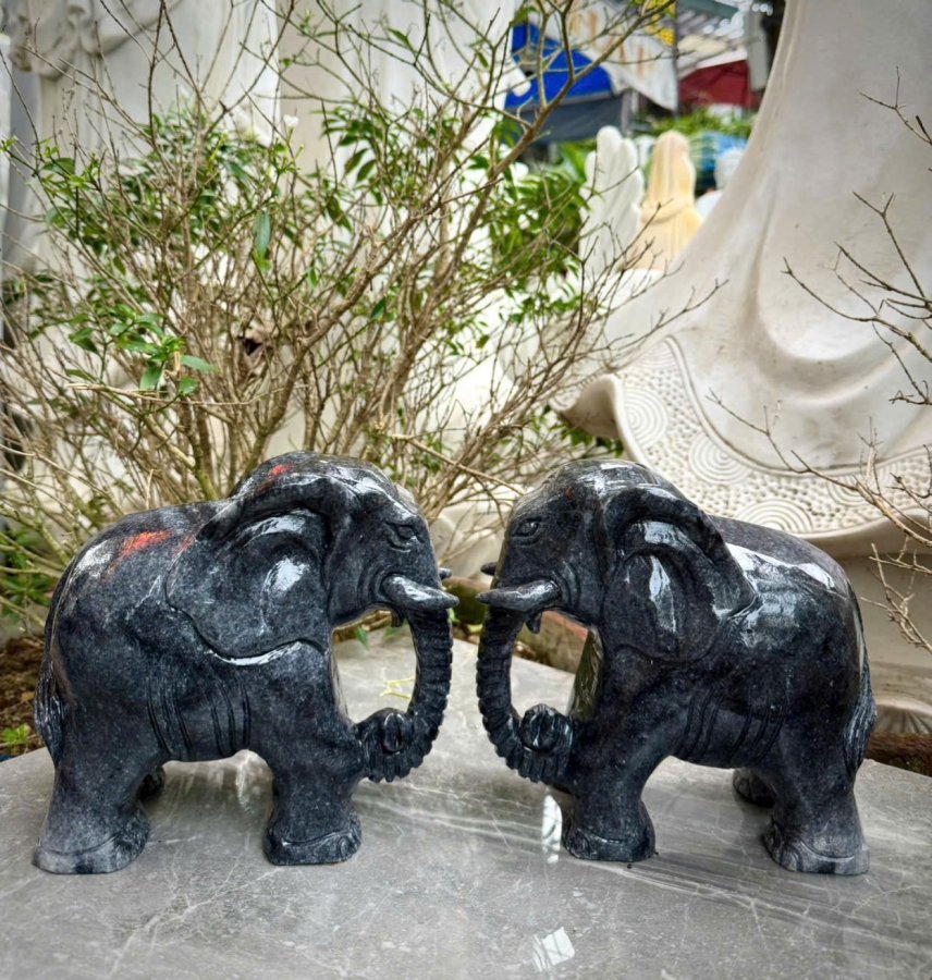 Cặp voi đá cẩm thạch đen cao 17cm ngang 20cm dày 10cm nặng 8.4kg.