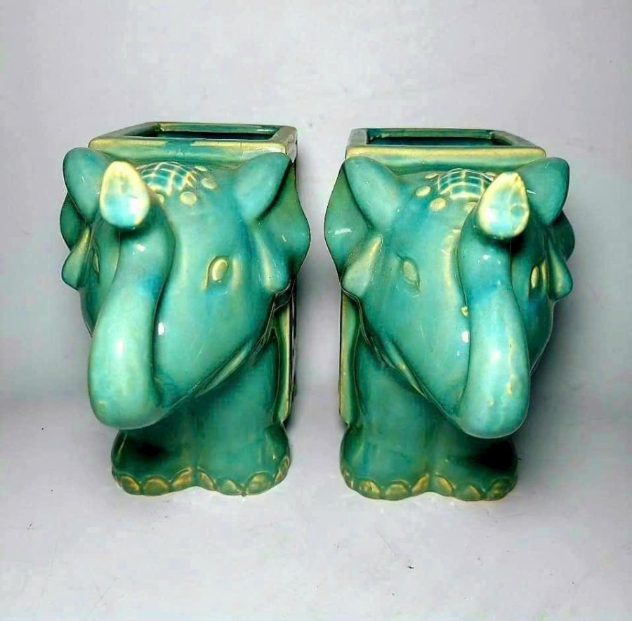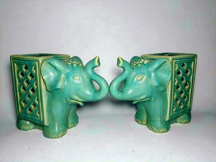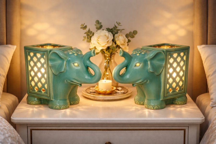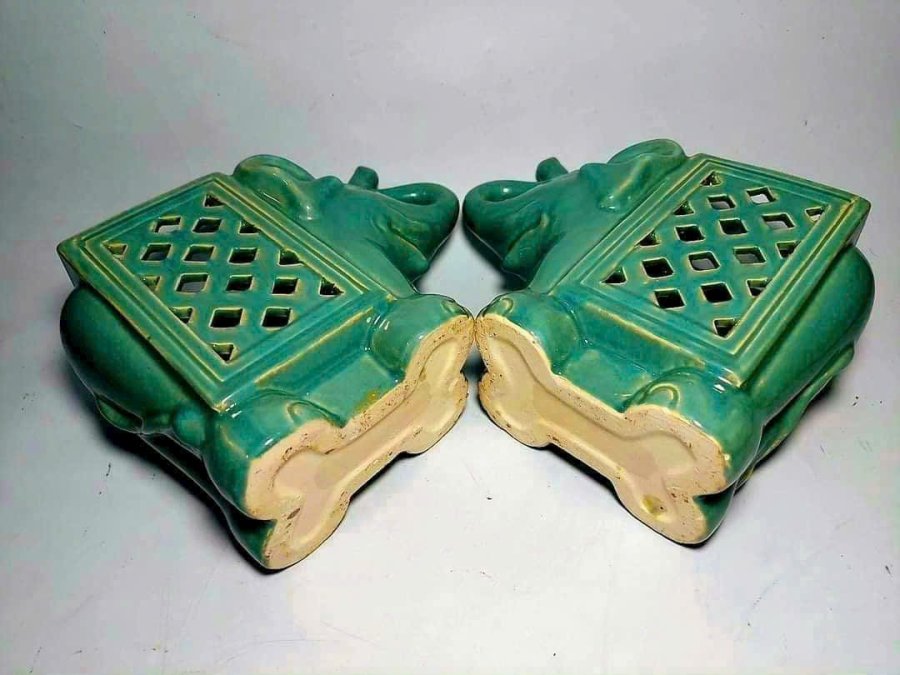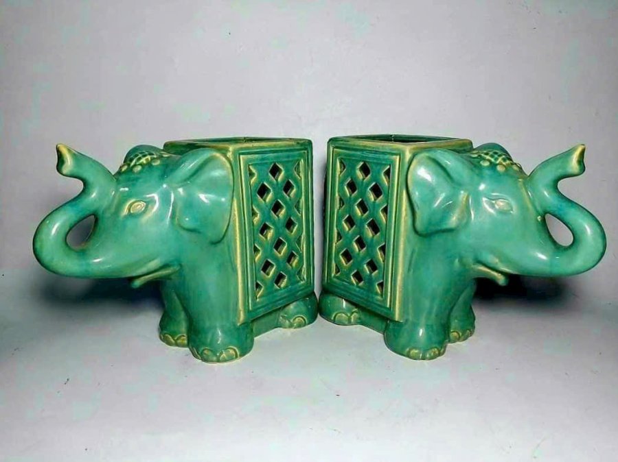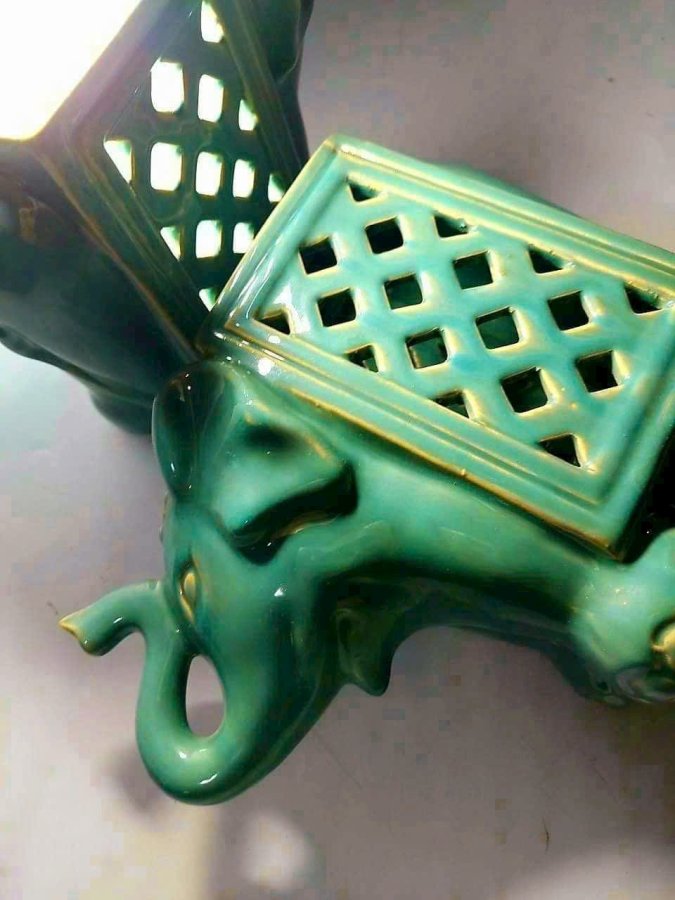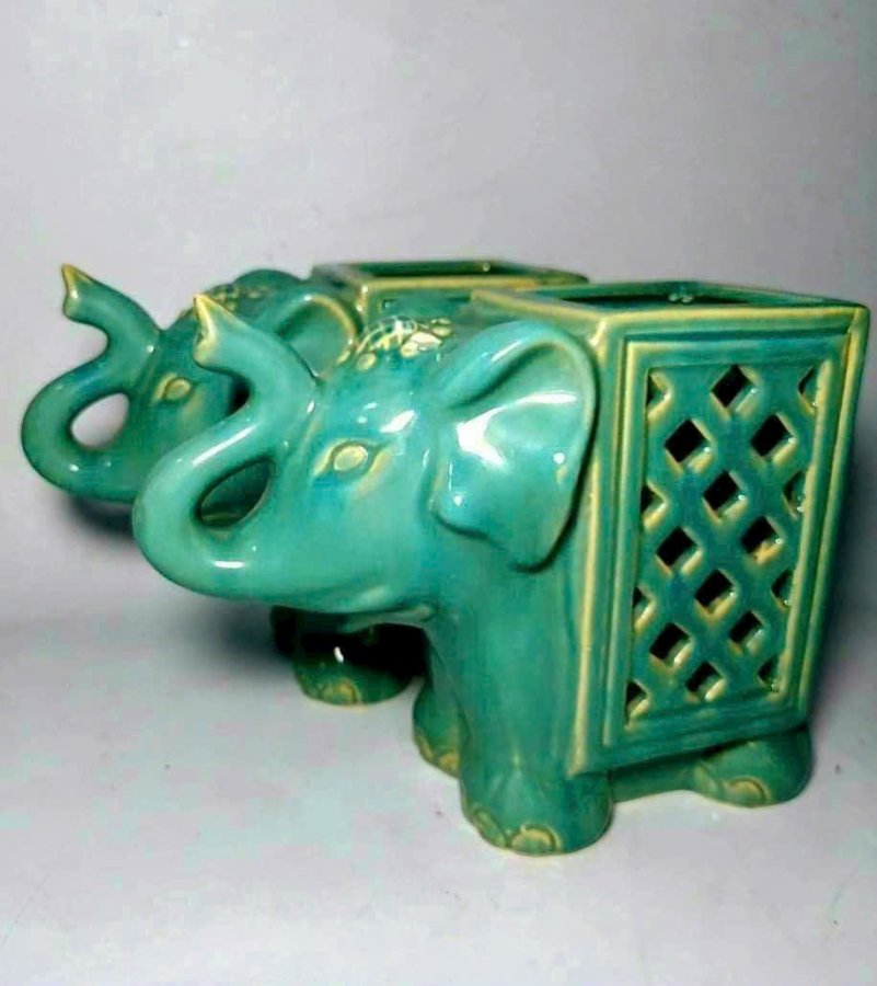 Cặp voi đèn gốm men ngọc. Cao 18cm*25cm. 1300k