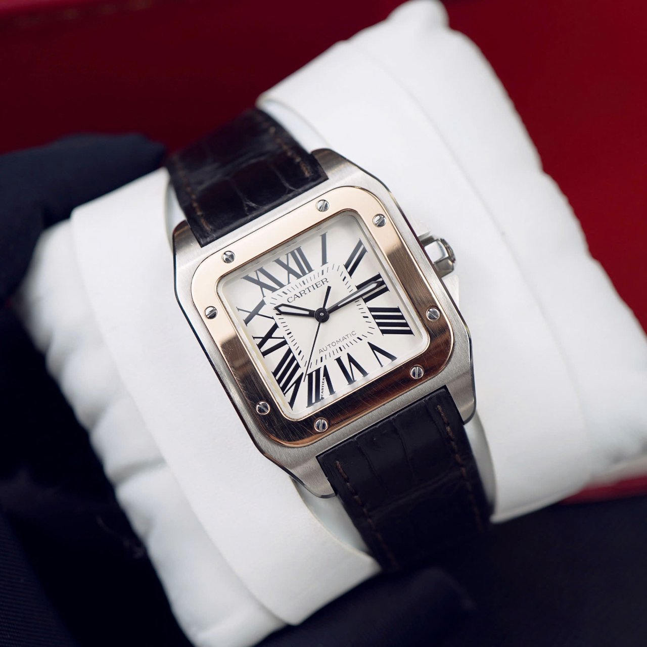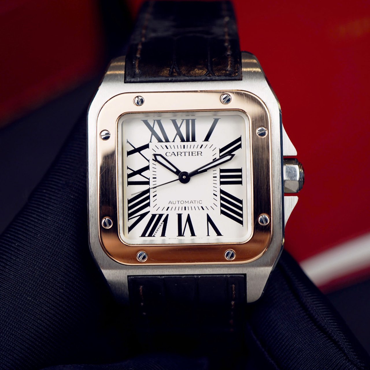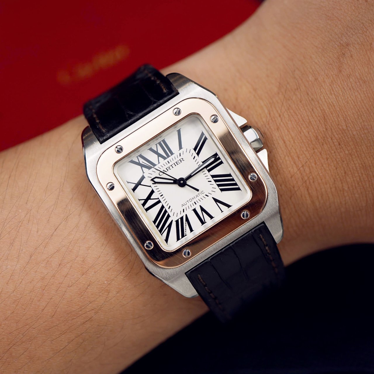 Cartier Santos 100 Medium 18k Rose Gold/Steel W20107X7