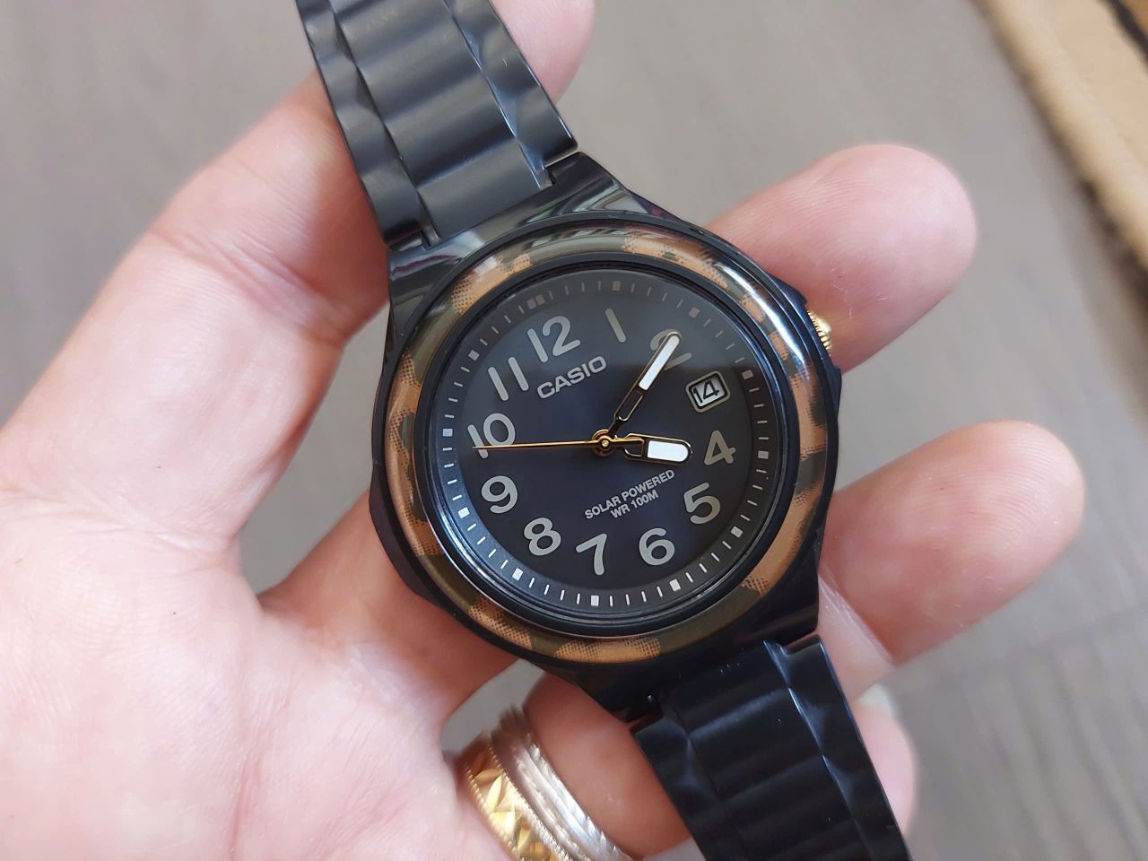 Casio quartz hàng chính hãngMáy pinNiềng ************ nâuDây và vỏ nhựa cao cấp rất đẹpHàng mới >97%Size 38 ko tính númGiá 420k