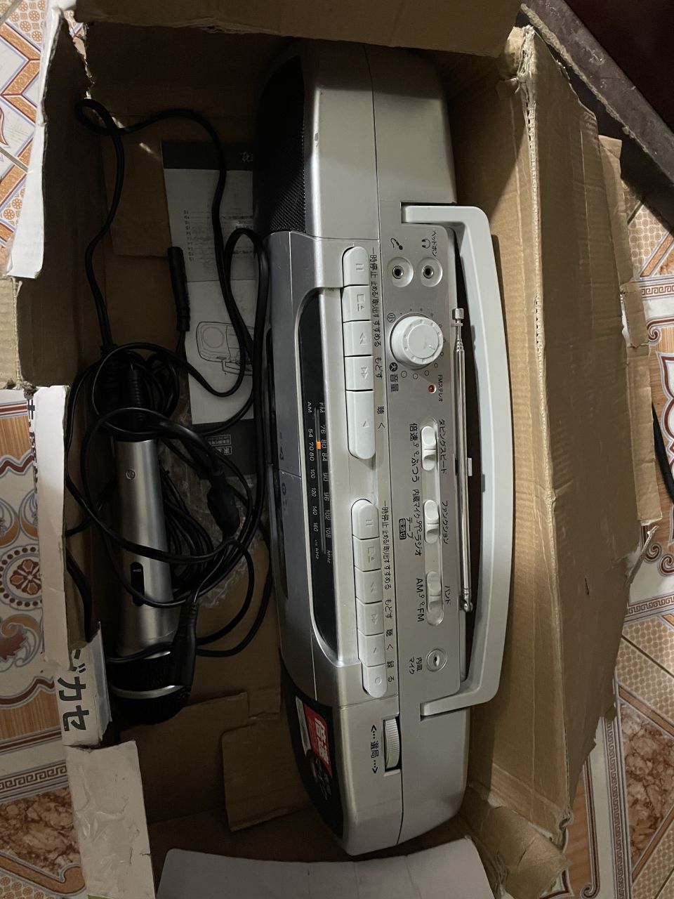Cassette Koizumi date 2021,hàng xuất Nhật,điện 100v,hát tốt cassette,radio 2 band sóng AM,Fm 108mhz,ngoại hình đẹp,máy kèm thùng,có sách hướng dẫn và micro..