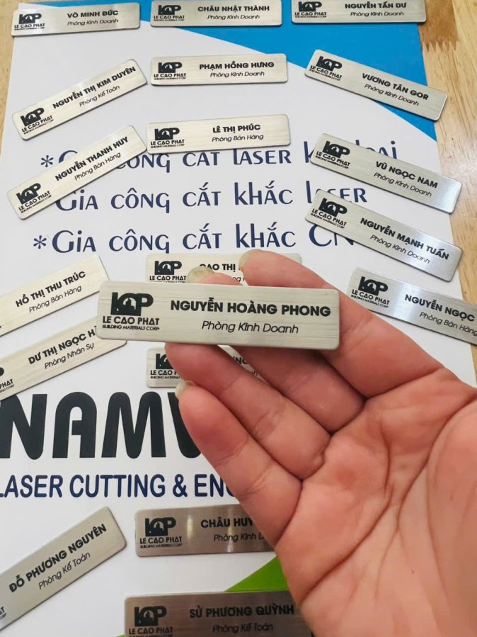 CẮT – KHẮC LASER THẺ TÊN NHÂN VIÊN INOX THEO YÊU CẦU