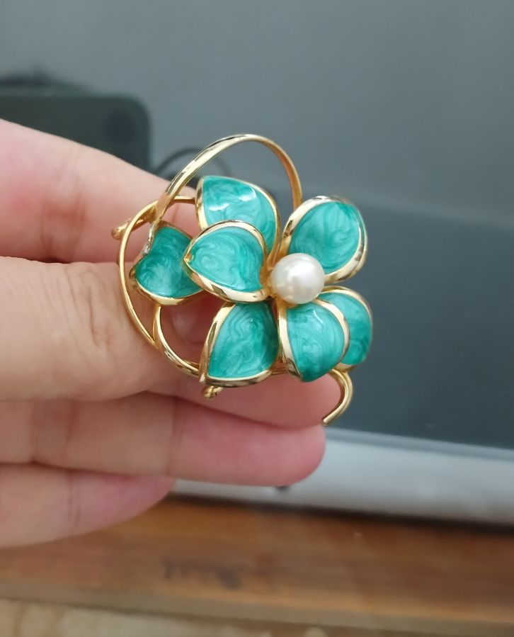 Càu áo hình biing hoa đính ngọc trai Akoya 7li.