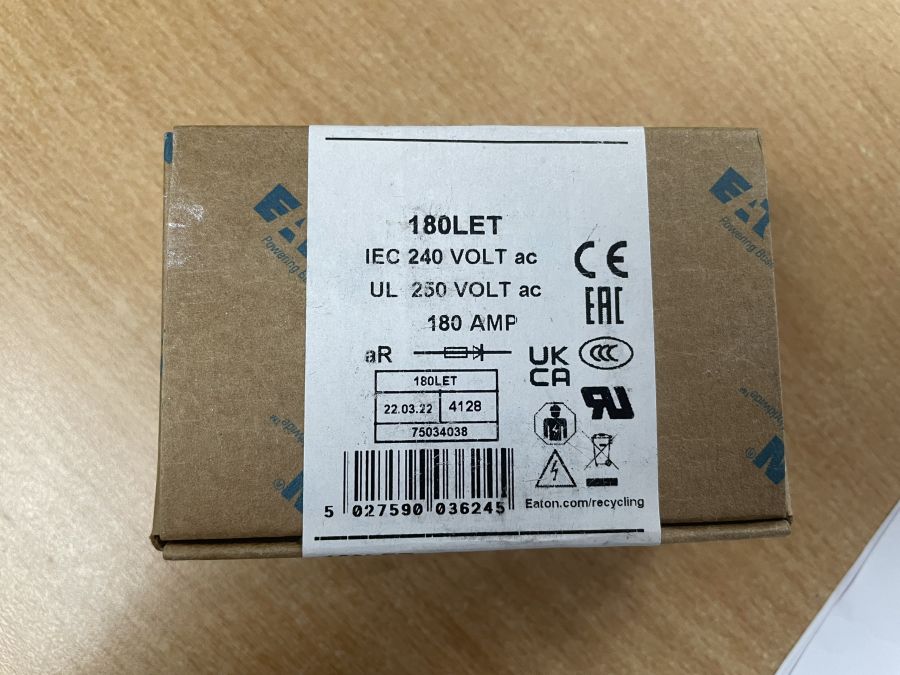 CẦU CHÌ BUSSMANN 180LET Điện áp định mức: 240Vac/150Vdc Dòng điện định mức: 180A Dòng cắt: 200kA Kiểu thân tròn – British Standard Loại cầu chì bảo vệ thiết bị bán dẫn, cắt nhanh, thuộc loại aR – bảo vệ ngắn mạch Dùng để bảo vệ: Biến tần, UPS, Bộ điều khiển DC, Bộ nguồn…