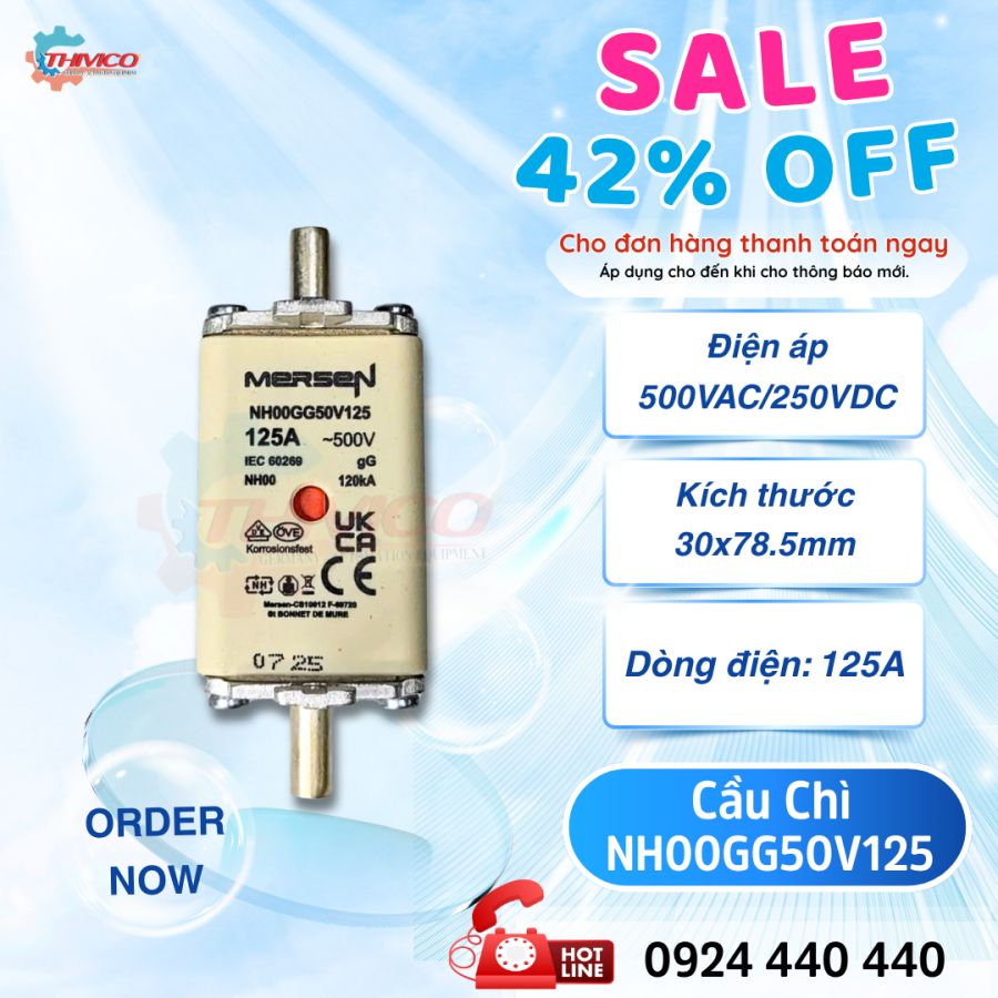 Cầu chì Mersen NH00GG50V125