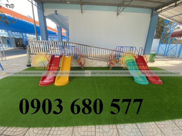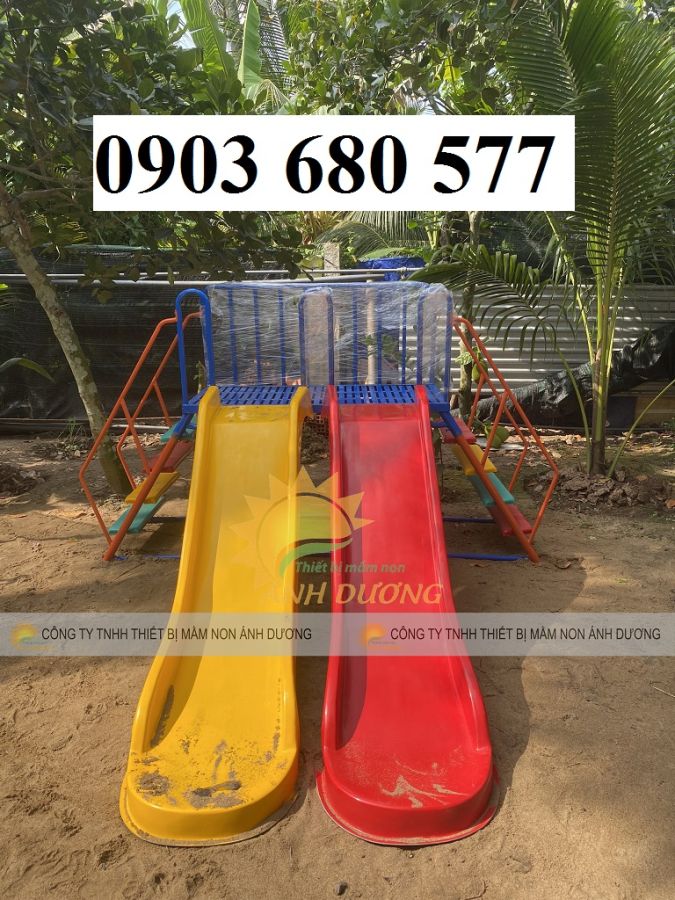 - Máng trượt được thiết kế khá dài và rộng rãi, được cố định chắc chắn với khung sắt của cầu tuột 2 máng.