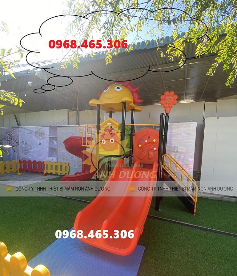 Cầu trượt có các thành phần nhựa chịu được nhiệt độ cao 95 độ C, chống sốc, chống trượt, chống nứt, không phai màu.