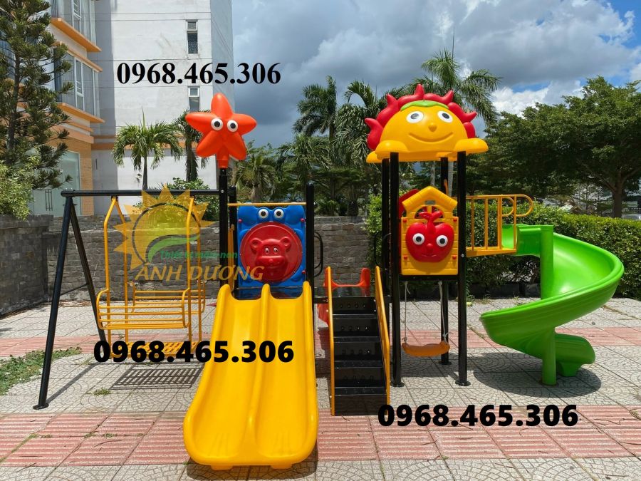 Cầu trượt gồm các chi tiết máng trượt, phù điêu trang trí, ghế xích đu được làm bằng nhựa LLDPE cao cấp hoặc nhựa composite chuyên sử dụng ngoài trời.