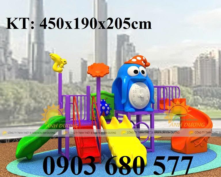 Cầu trượt liên hoàn ngoài trời là tổ hợp trò chơi cầu trượt đầy lý thú cho trẻ mầm non. Sở hữu bộ ba máng trượt hot nhất hiện nay: Máng trượt đơn, máng trượt đôi cùng máng trượt C, được thiết kế đầy khoa học và sáng tạo. Cầu trượt liên hoàn được thiết kế điểm nhấn là chú chim cánh cụt đáng yêu. Cầu tuột là hàng nhập khẩu.