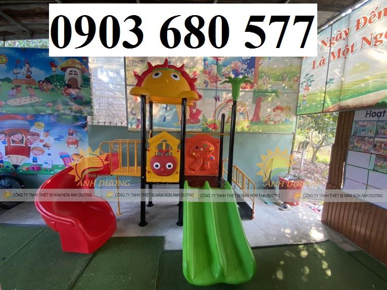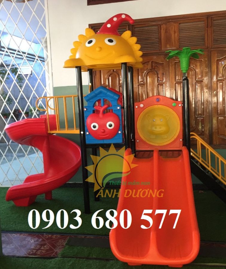 - Cầu trượt mầm non gồm các chi tiết máng trượt, phù điêu, ghế xích đu được làm bằng nhựa PP nguyên sinh. Các ống trụ của cầu trượt liên hoàn được làm từ sắt thép, sơn tĩnh điện chống sét chuyên cho ngoài trời.