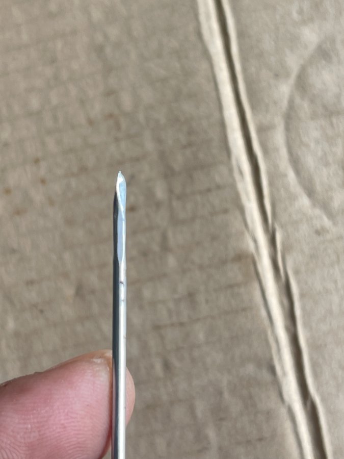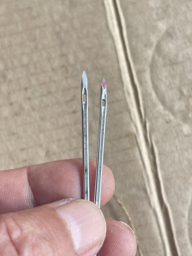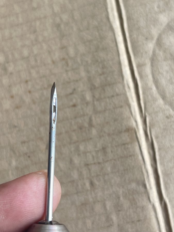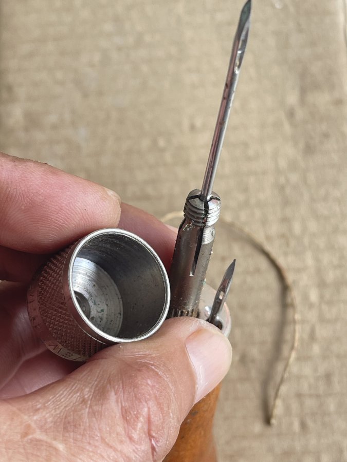 Sản phẩm còn lành nguyên như mới. Có hai cây kim theo kèm, bên trong tay cầm có cuộn chỉ, hàng hiếm gặp. Anh chị mua sưu tầm hay sử dụng. Cám ơn đã xem tin.