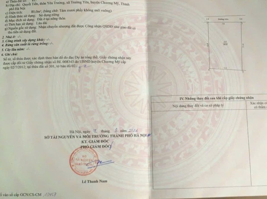 cc cần bán tổng DT 80m full thổ cư tại trừng yên bám QL6