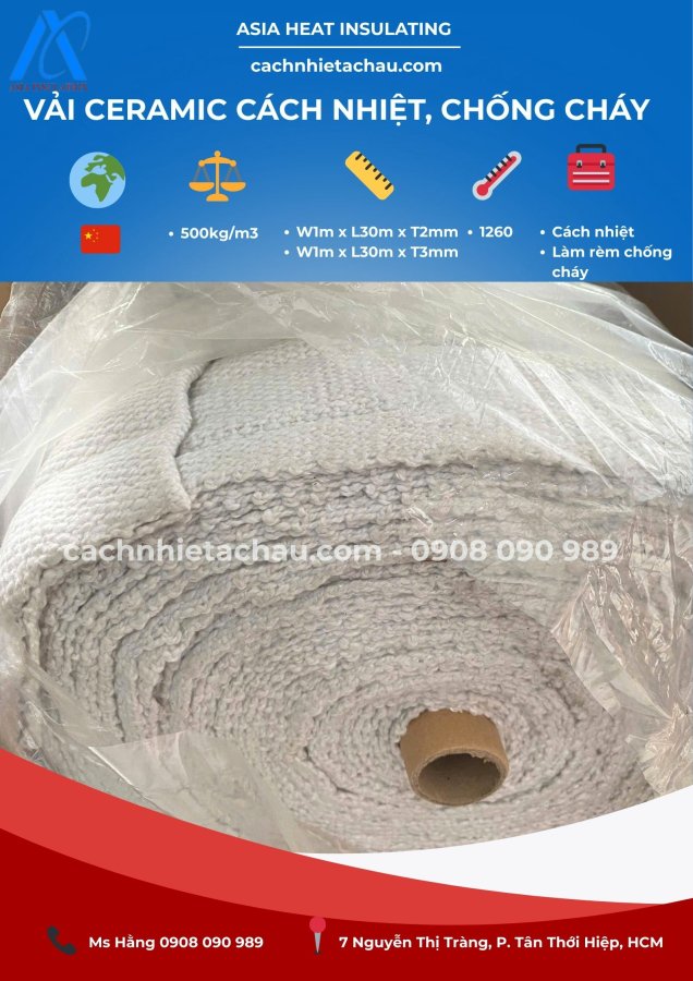 Sợi vải ceramic chịu nhiệt được sản xuất bằng sợi gốm chịu lửa bao gồm thành nhiều sợi gốm (nickel chrom tăng cường hợp kim, sợi thủy tinh gia cố lớp phủ vải sợi, sợi vải ceramic, xỉ thêu kết vải) tạo nên một loại vải siêu bền với môi trường và nhiệt độ cao.