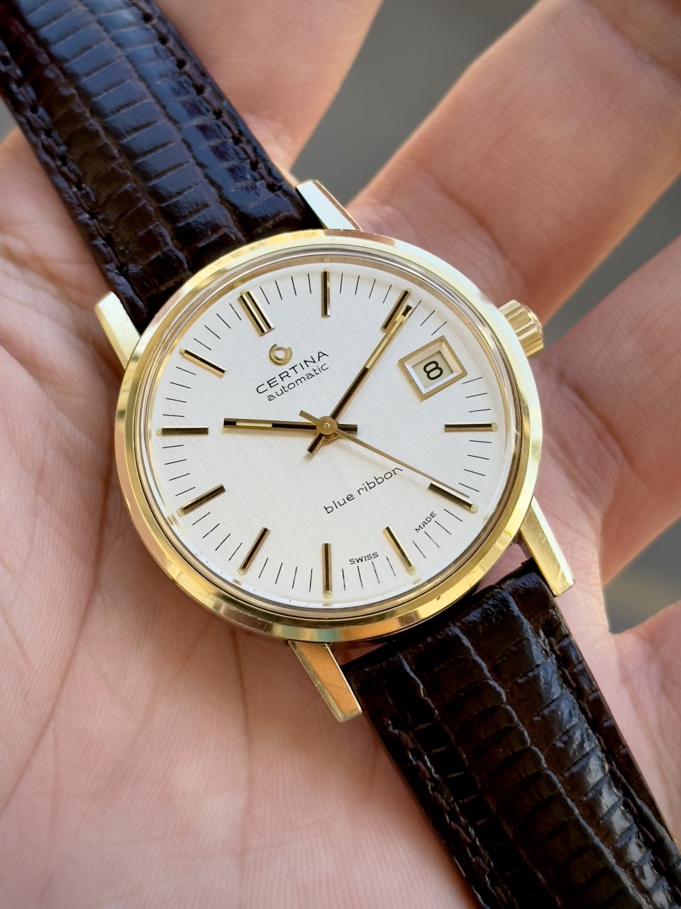 🔸Certina Blue Ribbon Auto 14k Gold Demi Vintage 196x's