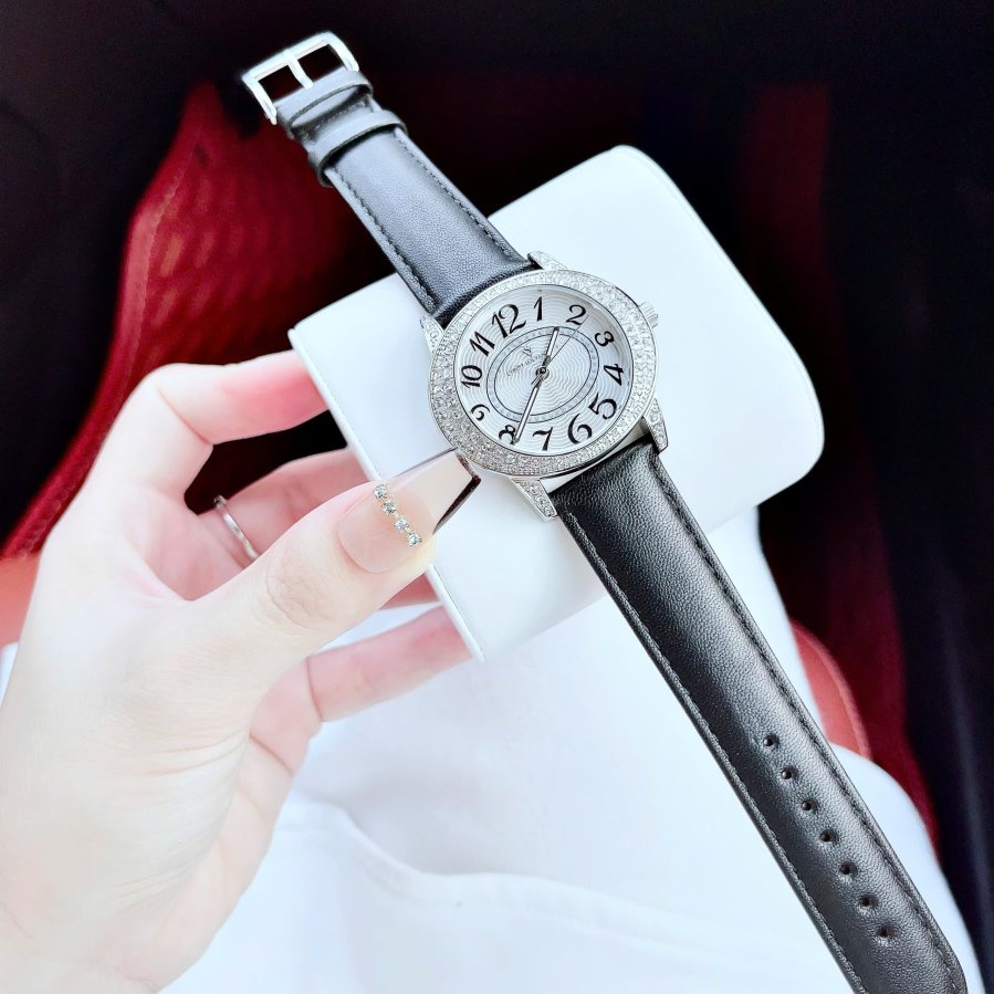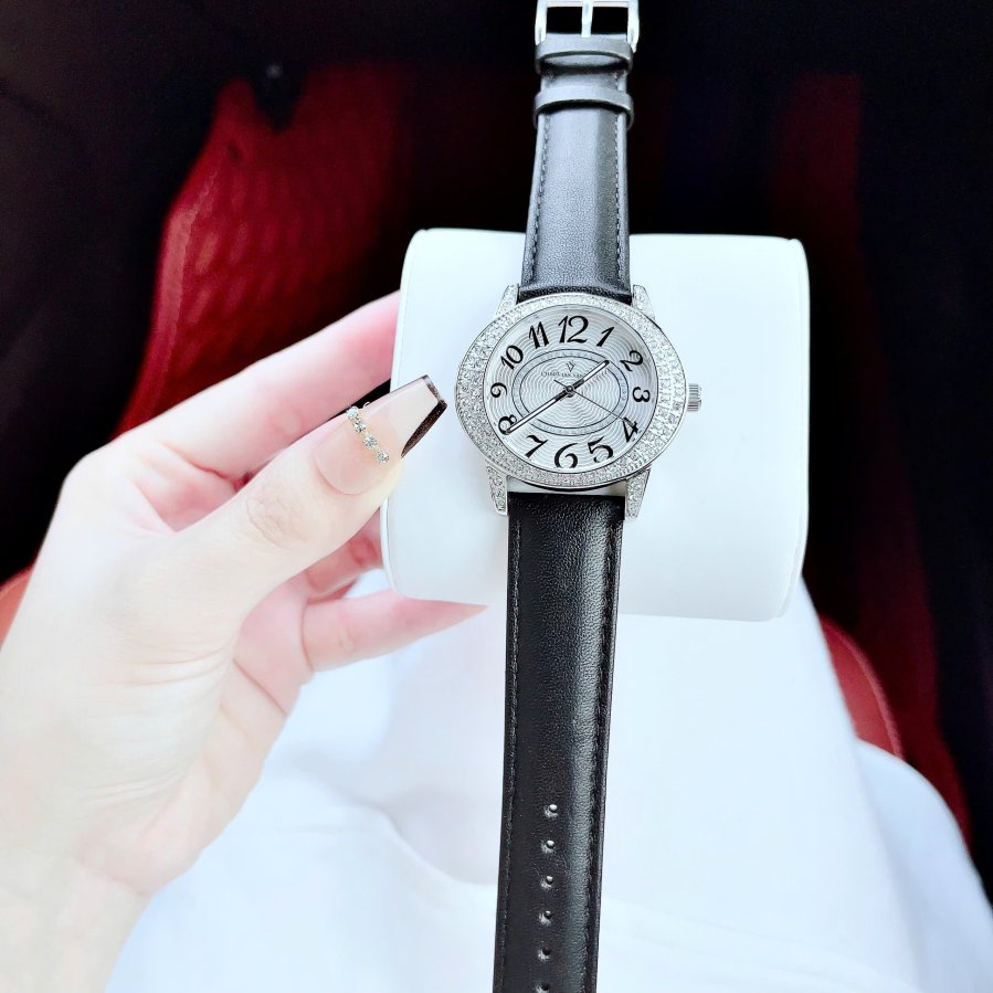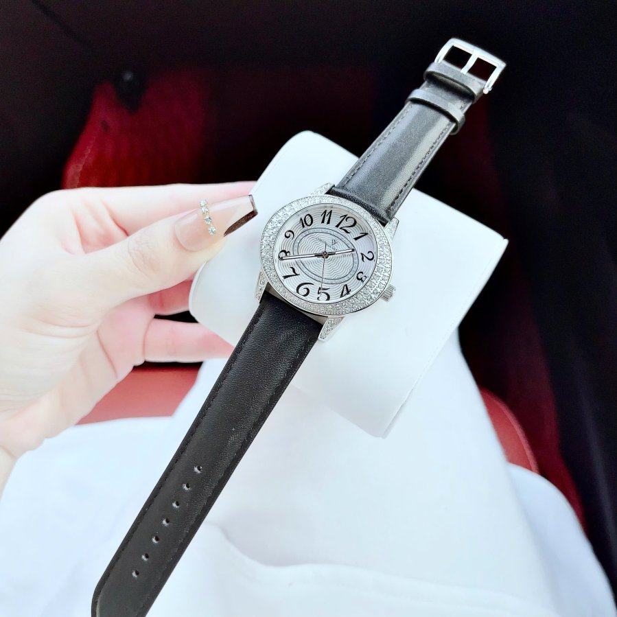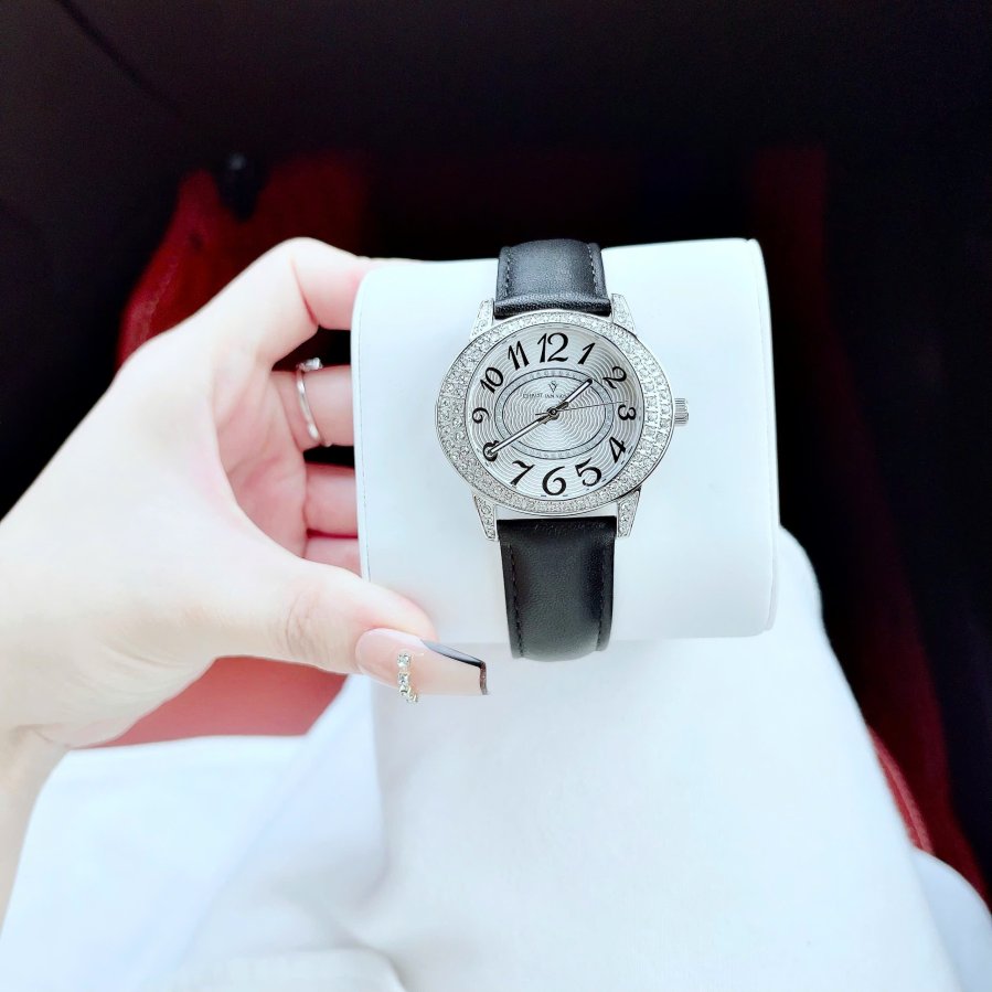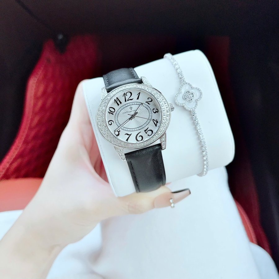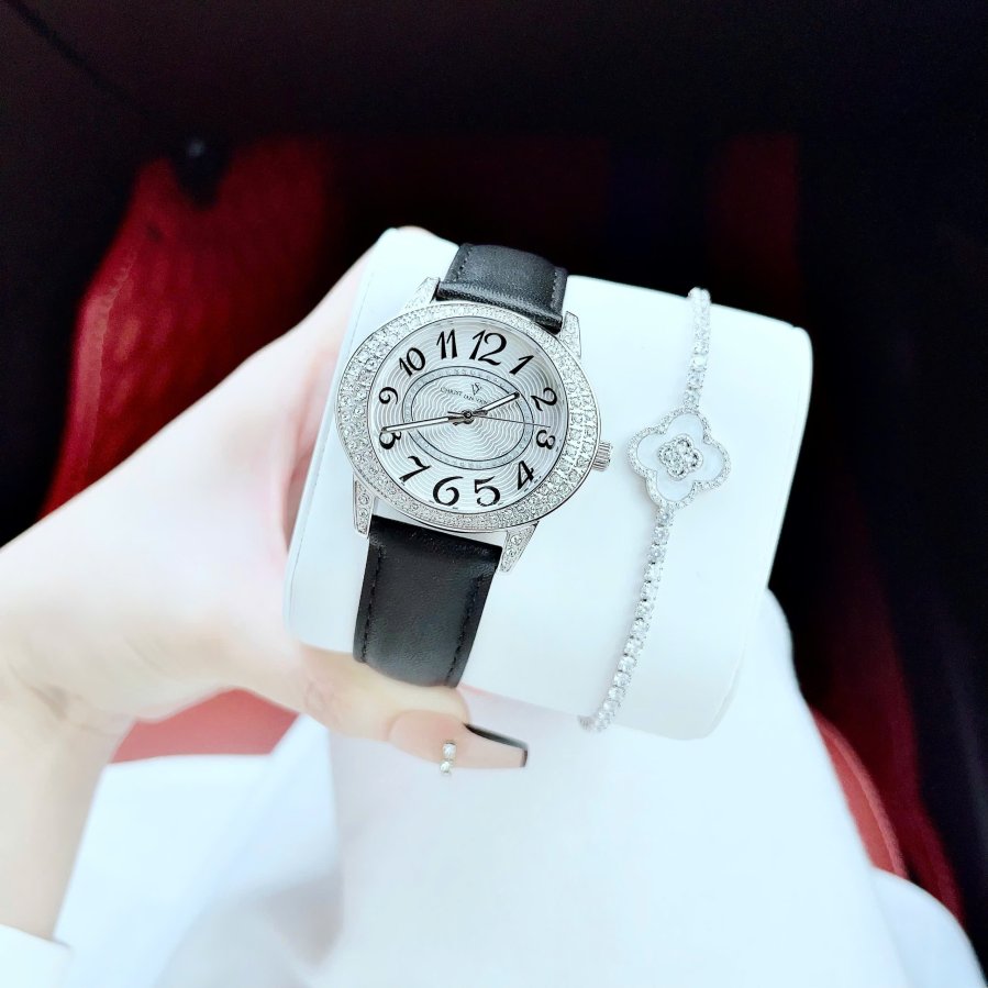 Ch-ris-tian Cv4810 - Thiết kế sang trọng, đẳng cấp. Bản dây da đen mặt trắng.