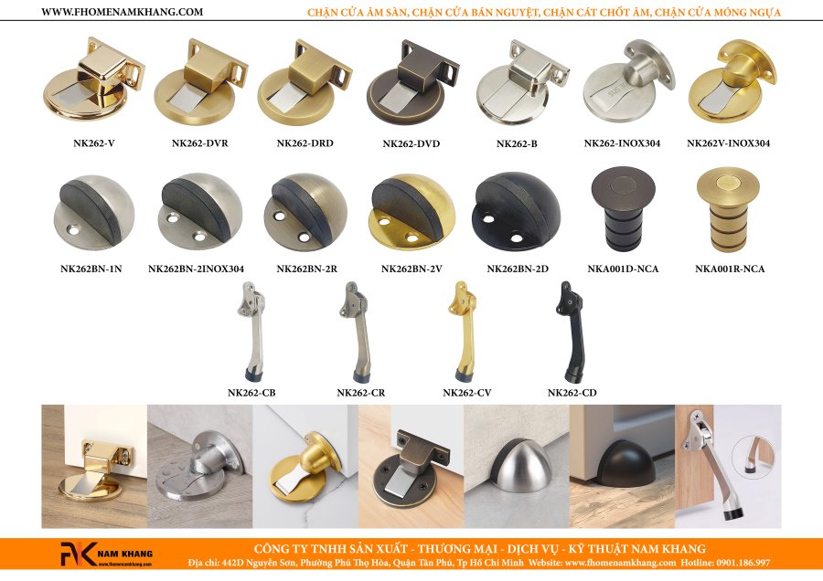 Tại FHomeNamKhang, chúng tôi hiểu rằng mỗi chi tiết nhỏ đều quan trọng để kiến tạo nên một không gian sống tiện nghi và đẳng cấp. Chúng tôi cung cấp đa dạng các mẫu chặn cửa cao cấp, được lựa chọn kỹ lưỡng, đảm bảo: