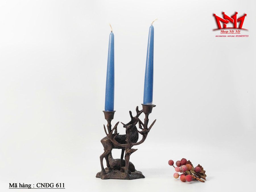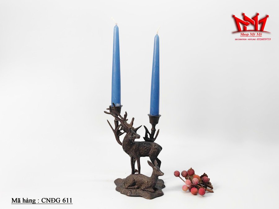 Chân đèn nến 2 đóa bằng đồng hình cặp đôi nai.