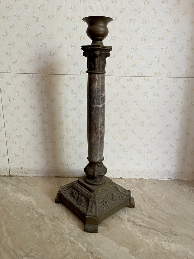 Chân đèn đồng pháp tay đá cẩm thạch về ae lên bầu