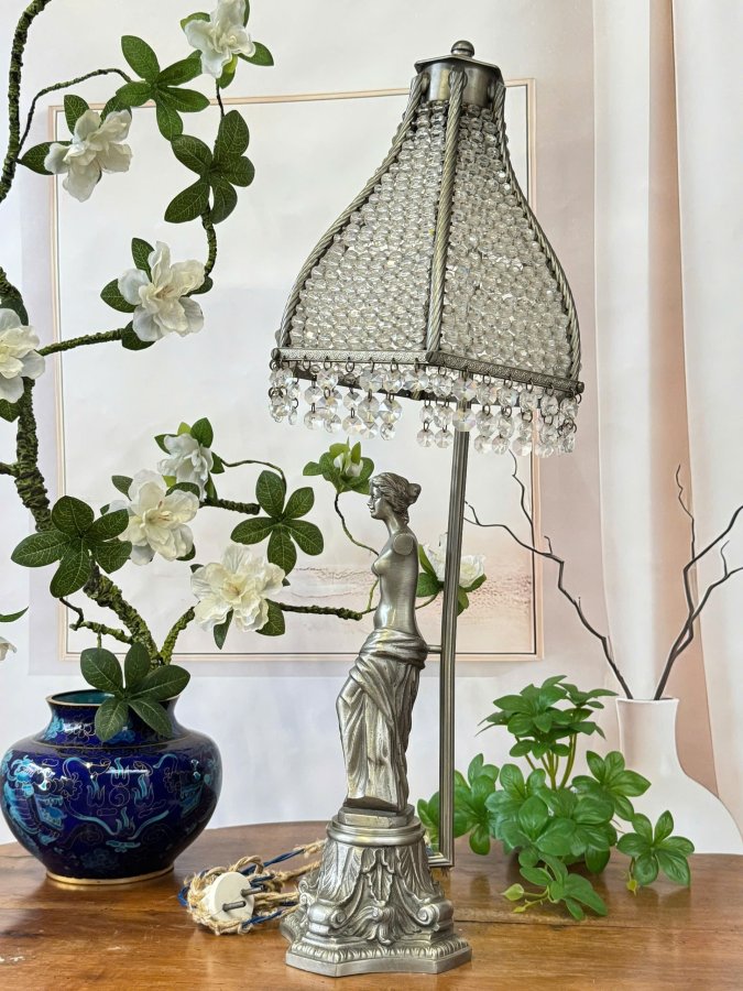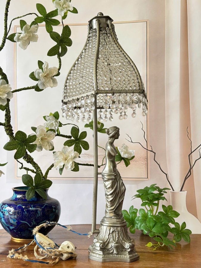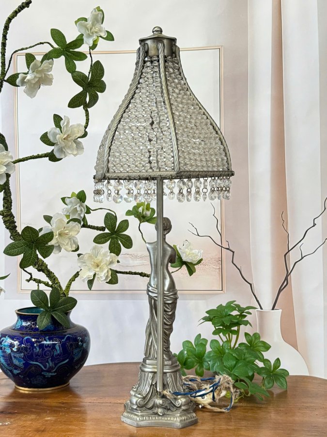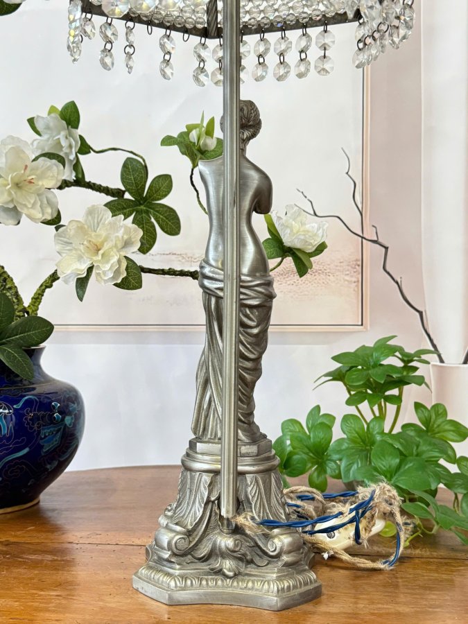 Chân Đèn Tượng Đồng Thiếu Nữ Lắc Kê Bạc