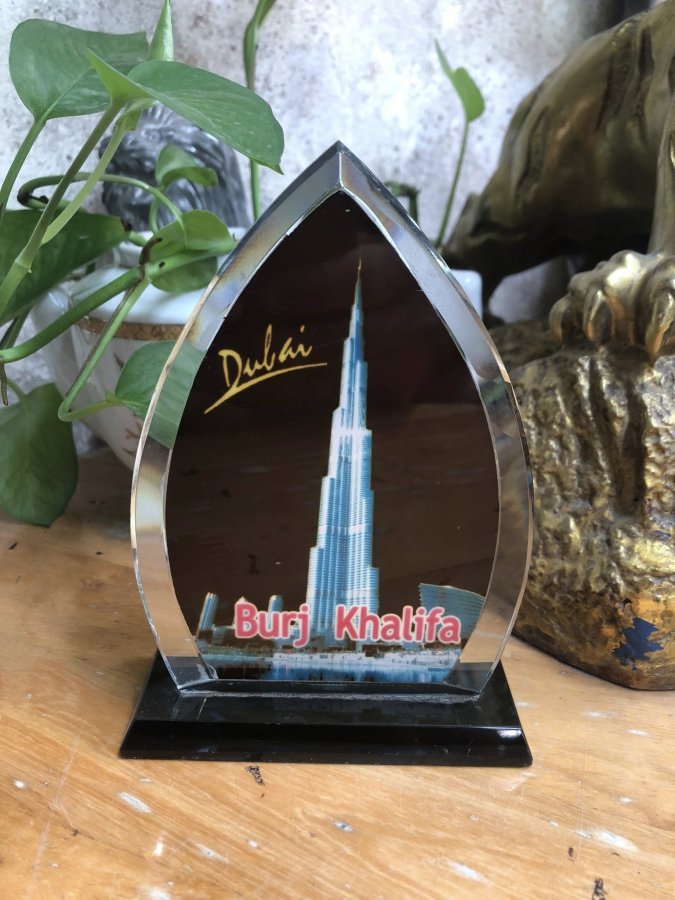 Chặn giấy pha lê 2 màu Toà nhà Buji Khalifa, Dubai, tình trạng đẹp như hình, kt cao 14 cm.