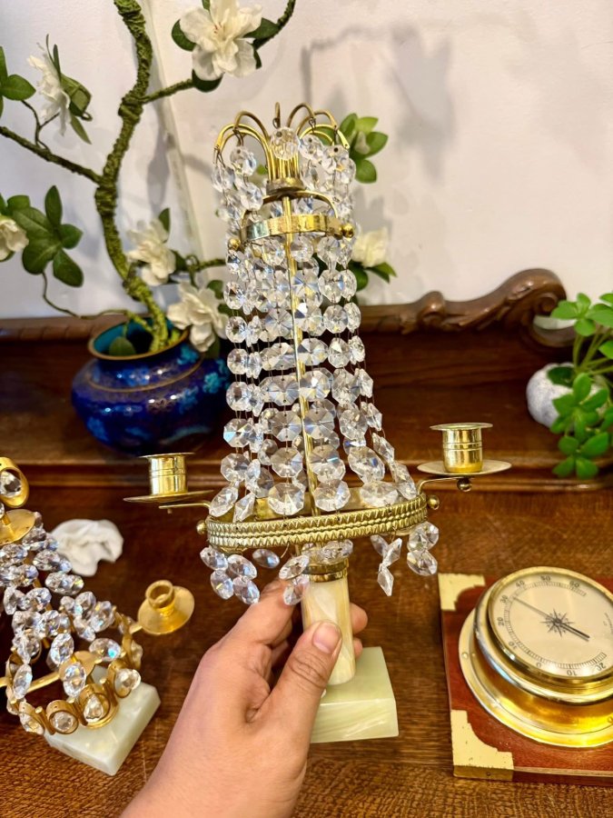 Chân nến bằng đồng phối với pha lê và đá cực kì đẹp lành tít pha lê lấp lánh.Giá:2tr6 2 emCall:0333534345