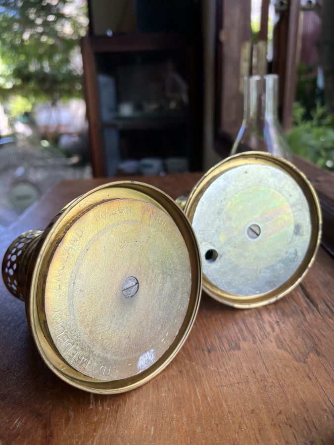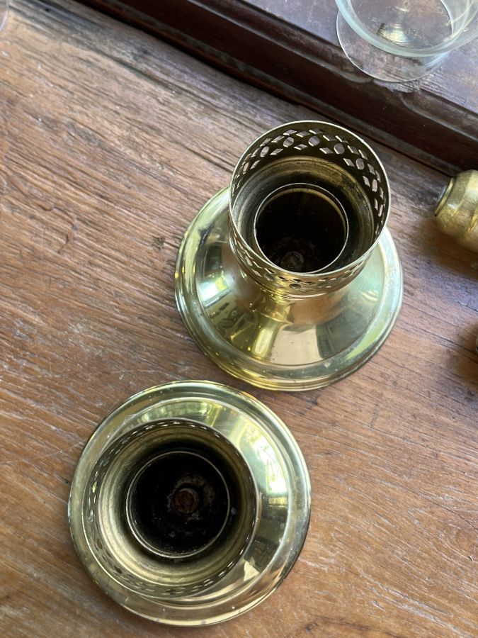 Em giao lưu đôi chân nến Anh Quốc = Đồng đế Gang rất nặng và vững ~ 800g mỗi cây.