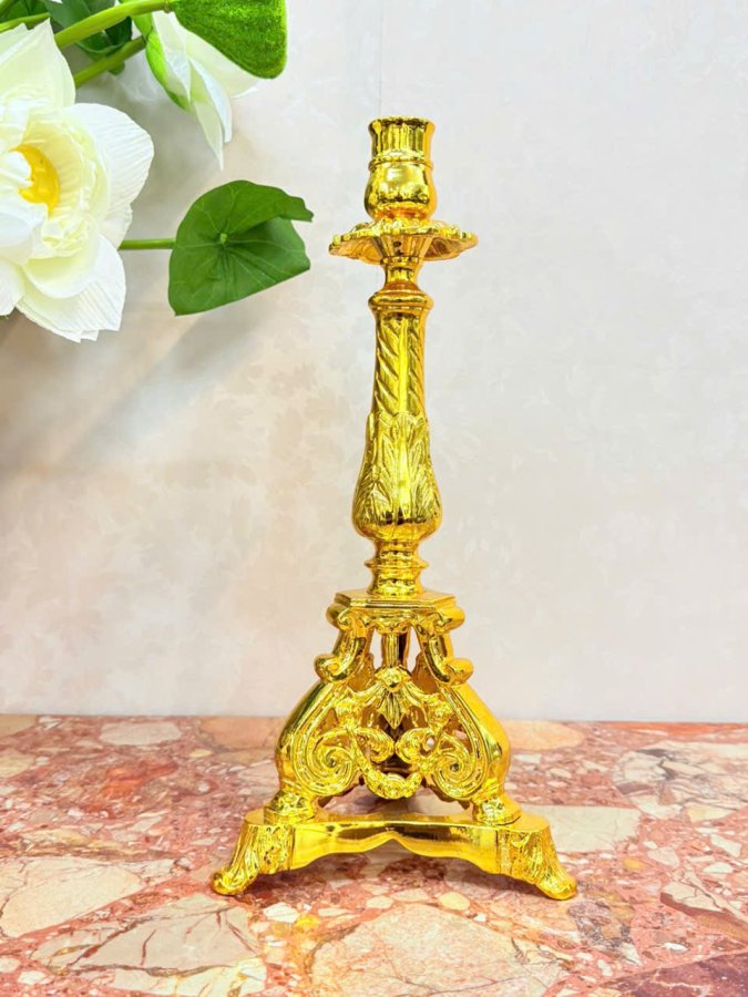 Chân nến Châu Âu xưa đồng lắc kê vàng tuyệt đẹp