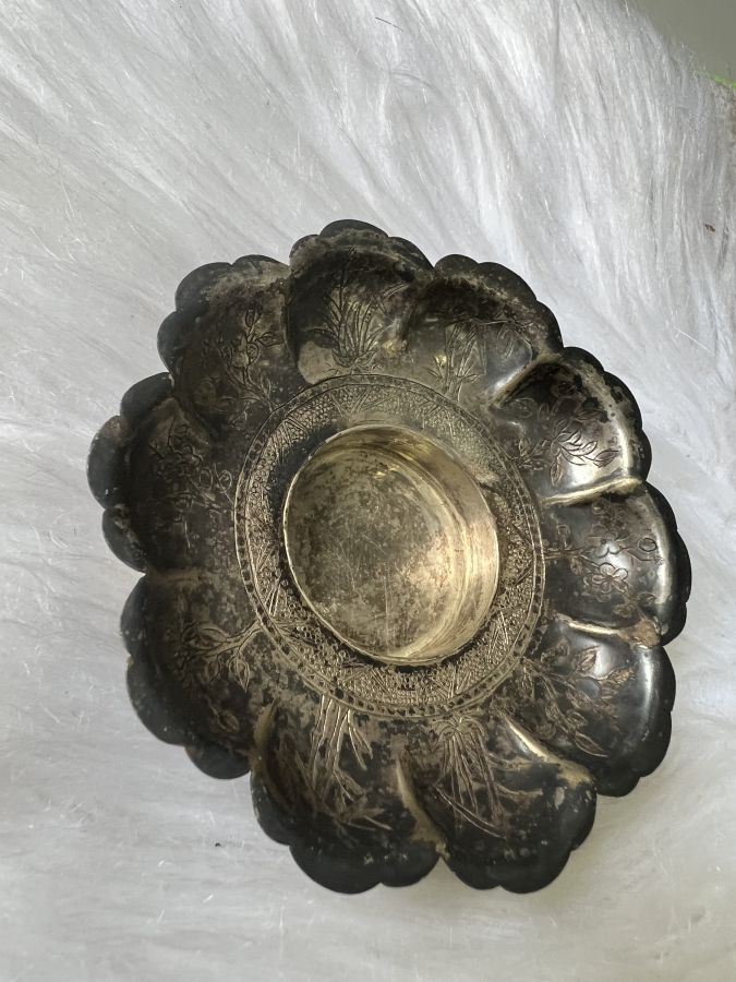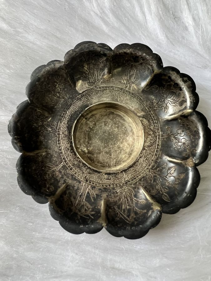 Chân nến cổ Đồ Huế Chất liệu bạc khối Đk 10cm