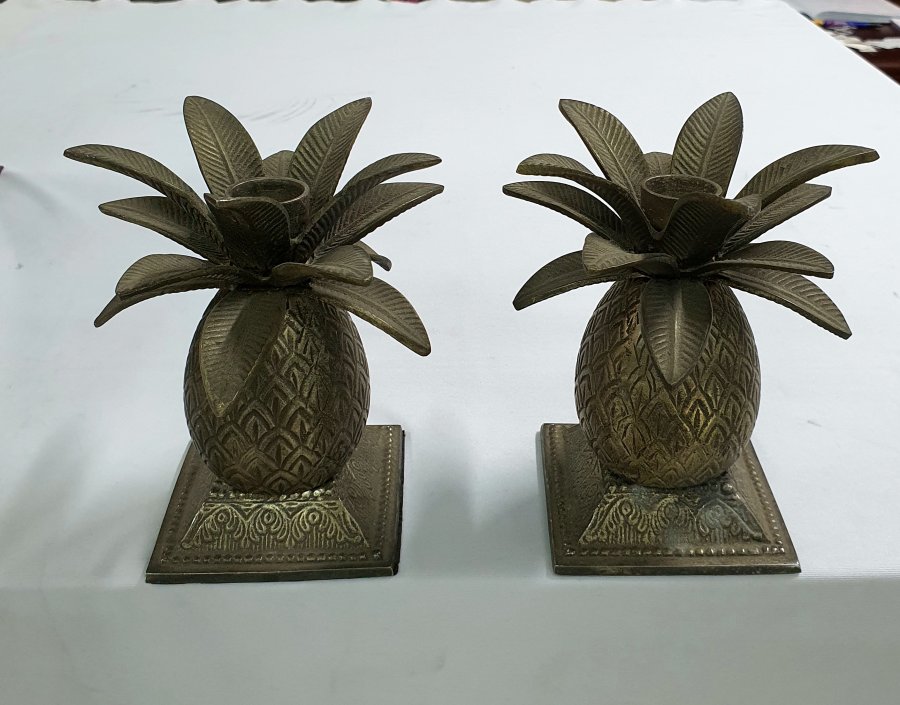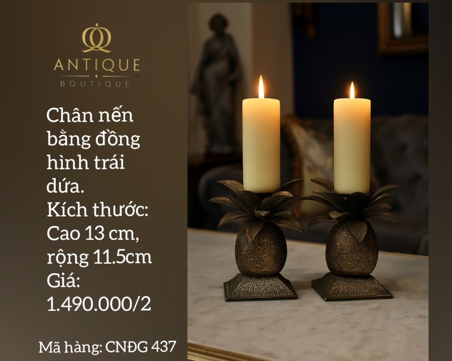 Chân nến bằng đồng hình trái dứa.Kích thước:Cao 13 cm,rộng 11.5cm. Giá: 1.490.000/2