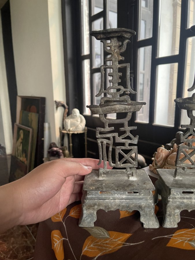 Chân nến Phúc Thọ thiếc cổ
