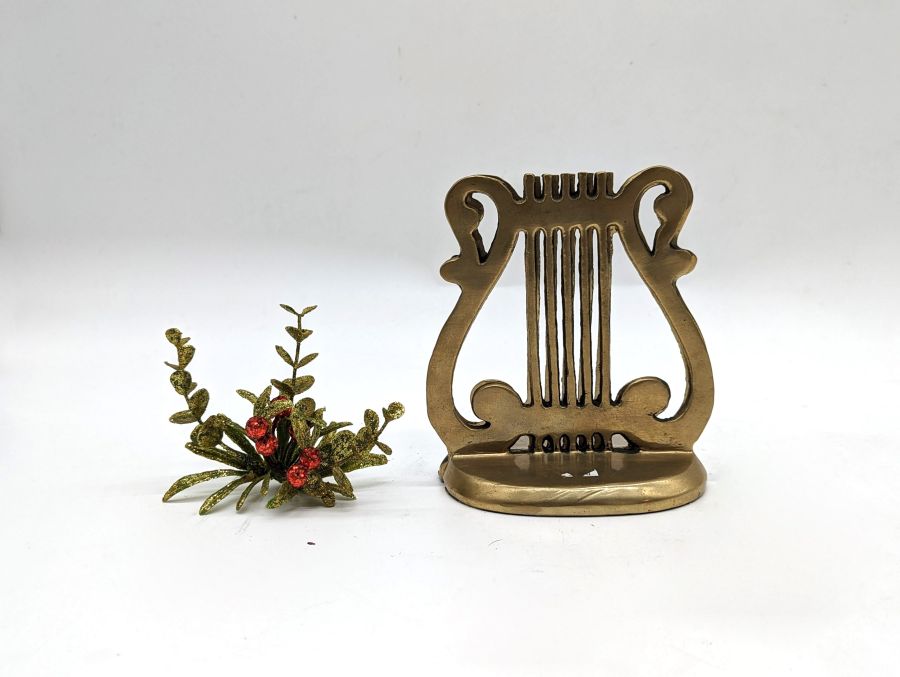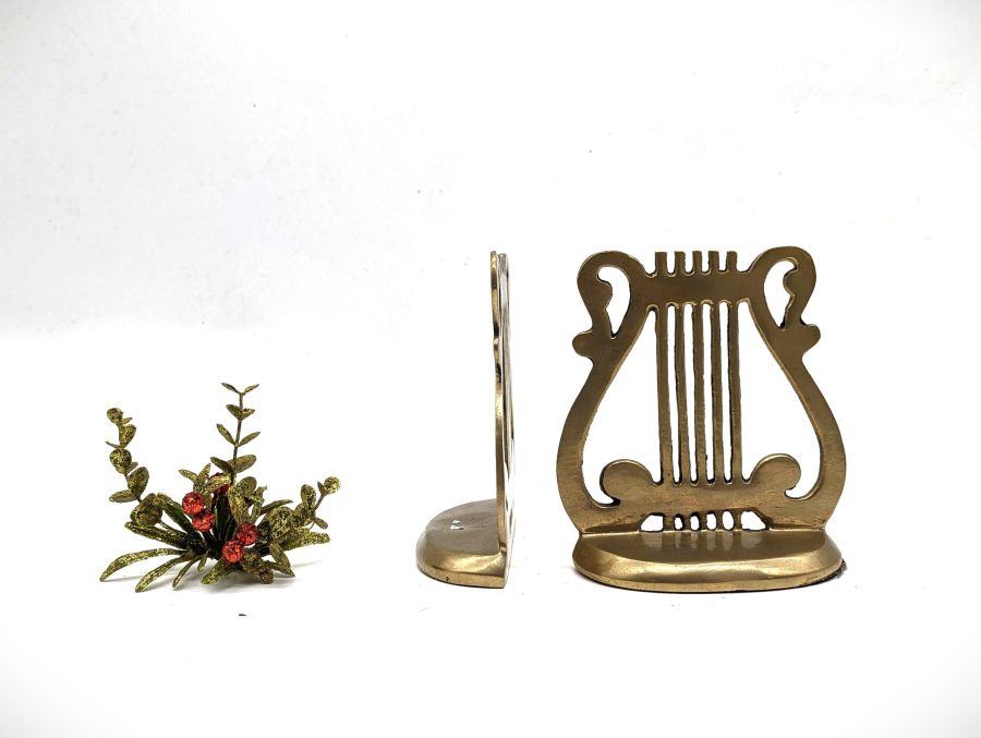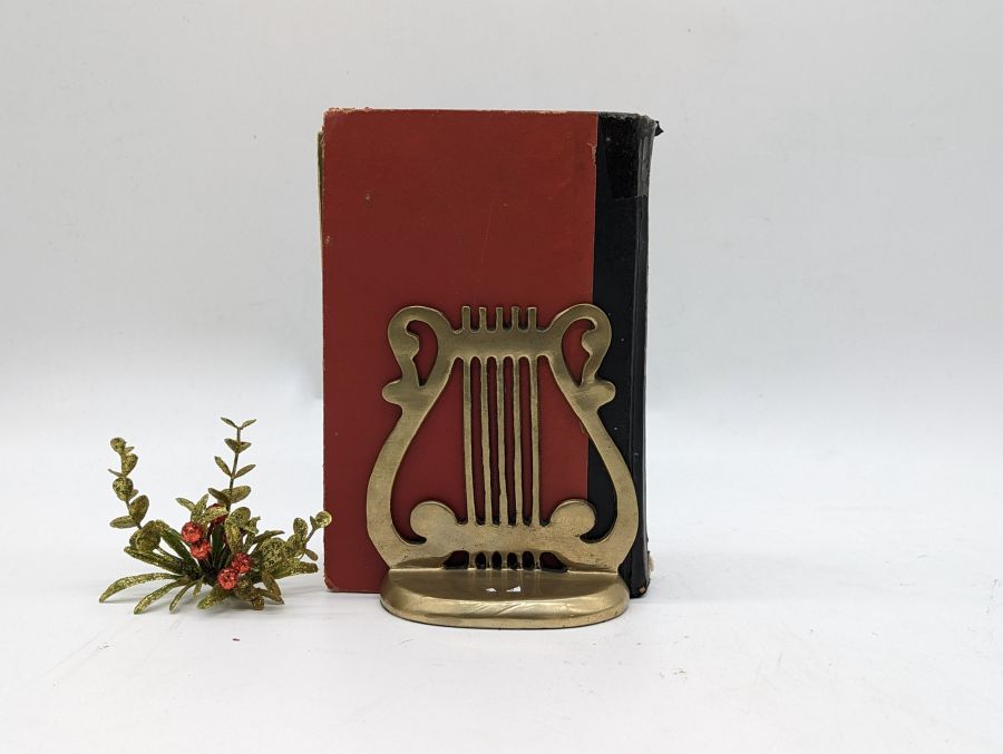 Chặn sách hình chiếc đàn được làm bằng đồng.