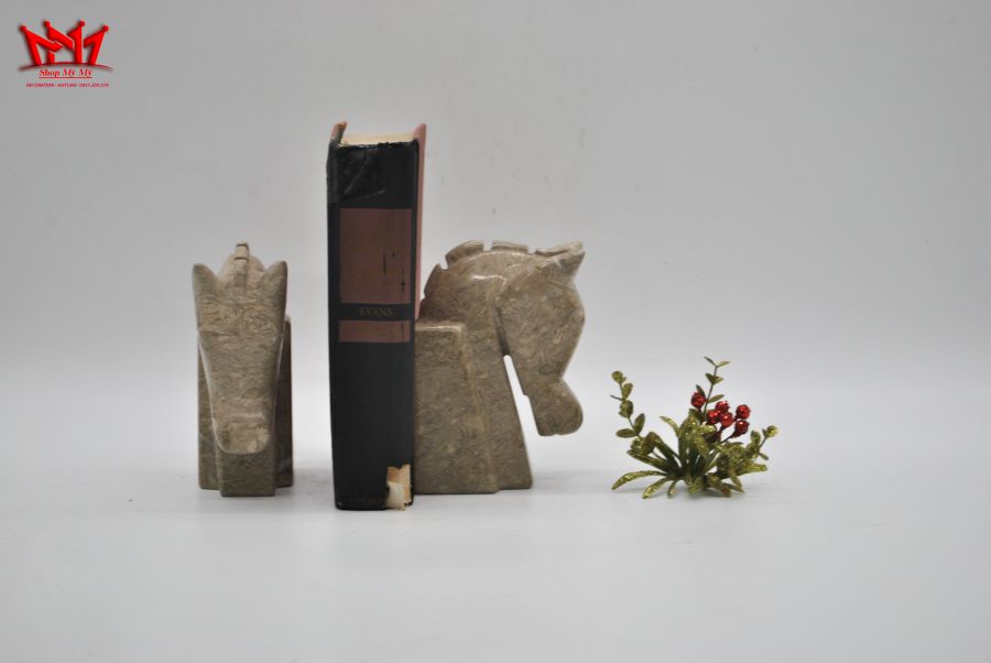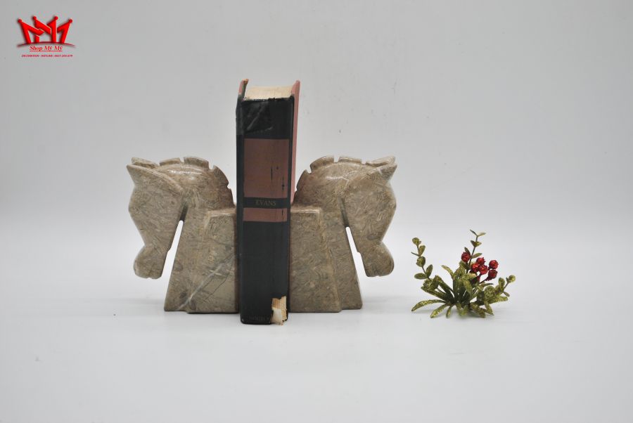Chặn sách hình đầu ngựa được làm bằng đá. Xuất xứ : Pakistan Trọng lượng : 3kg/cặp Kích thước : cao 14,5cm/ ngang 10,5cm/ sâu 5,5cm ( Kích thước 1 cái ) Giá : 1.890.000 đ/ cặp.