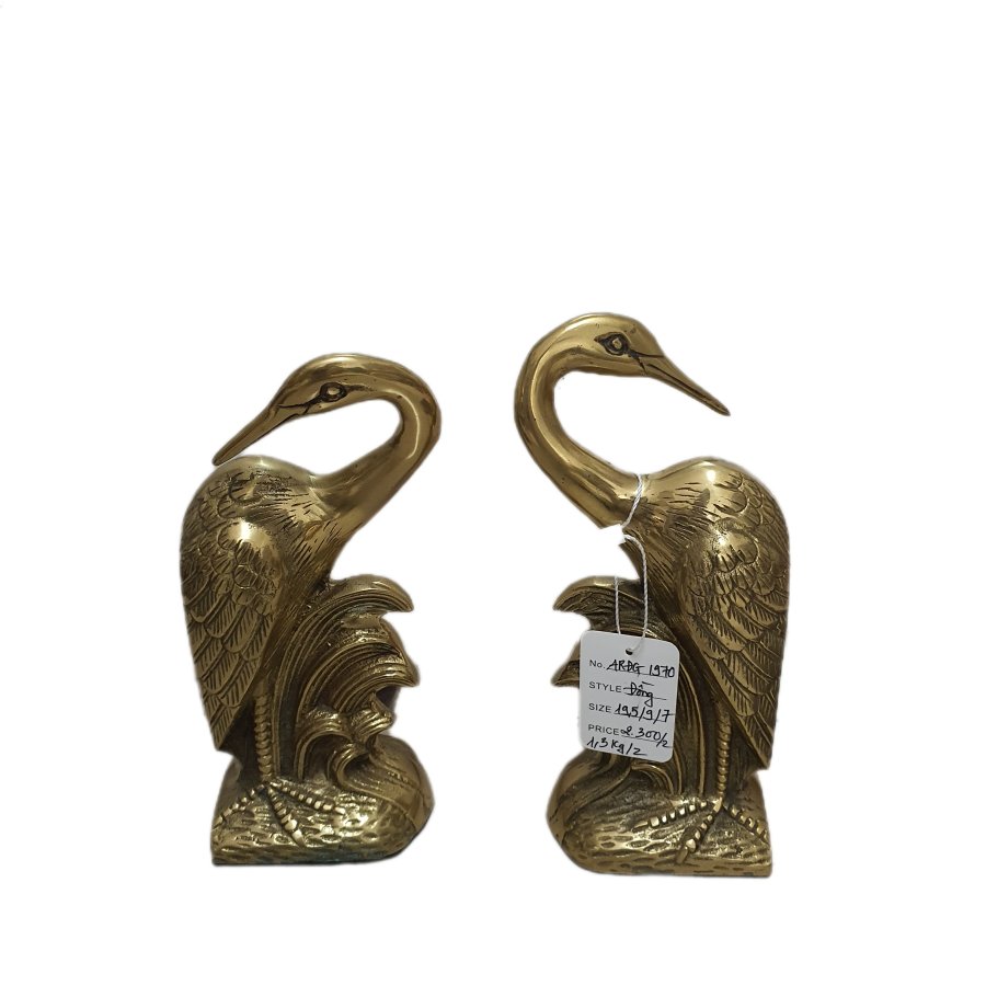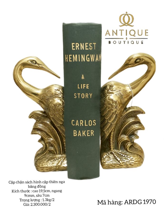 Cặp chặn sách hình thiên nga bằng đồng. Kích thước: cao 19,5cm, ngang 9cmm, sâu 7cm