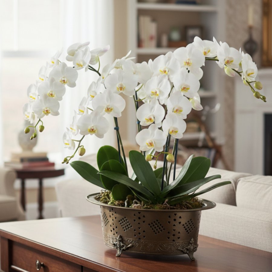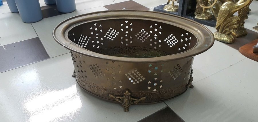 Chậu cây bằng đồng hình bầu dục hai quai hình mặt người nữ hy lạp,