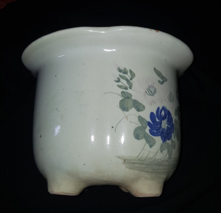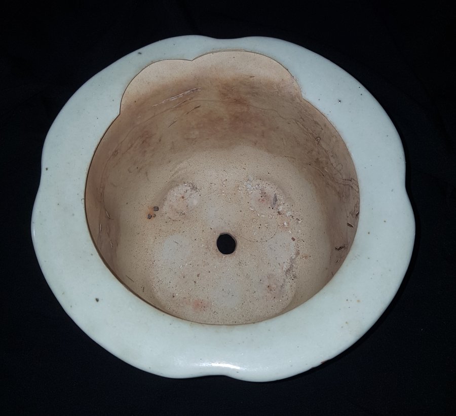 Chậu Vạn Ninh chuẩn cổ dáng hiếm thấy. đường kính miệng 22.5cm. cao 16.5cm vành miệng trong như hình , thân có vết âm gió theo thời gian còn lại lành lặn. vào cây vào hoa chơi vẫn rất thanh nhã. GL1250k