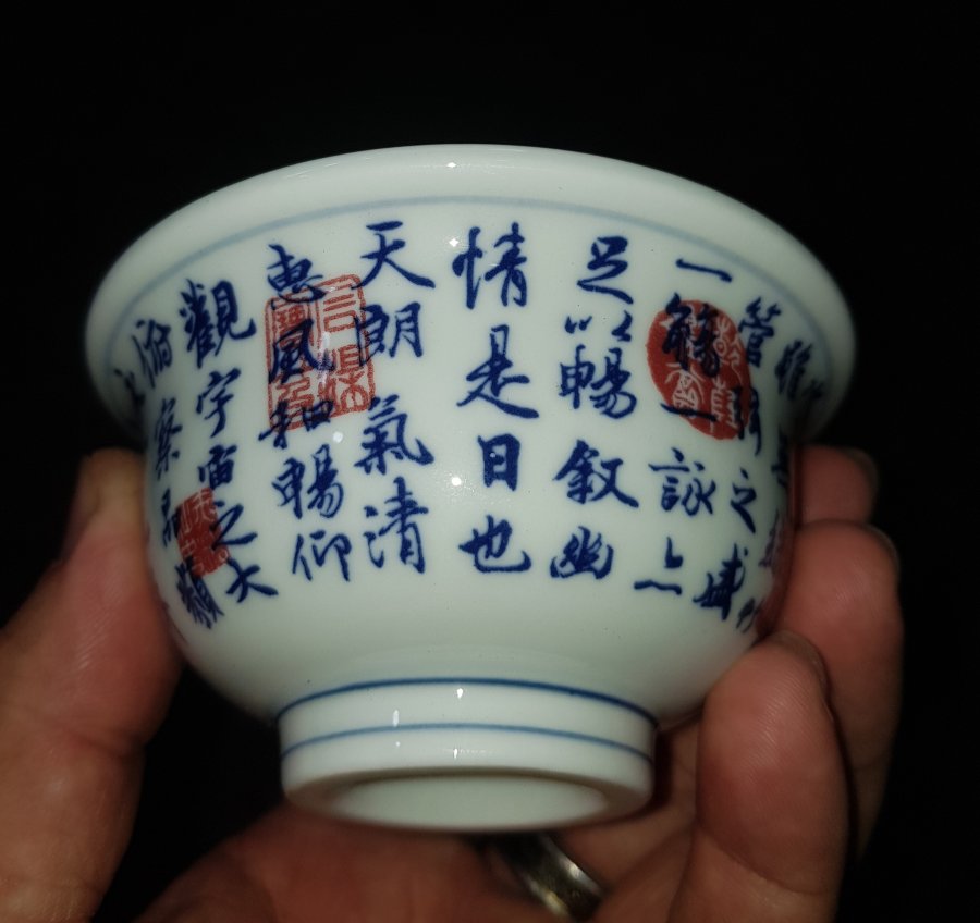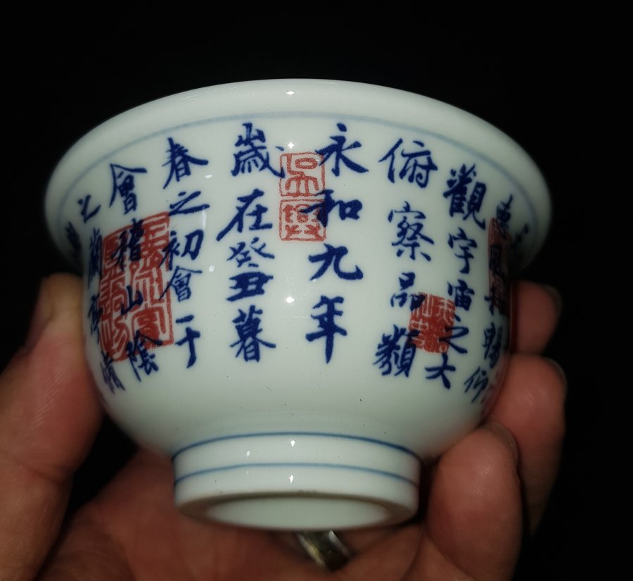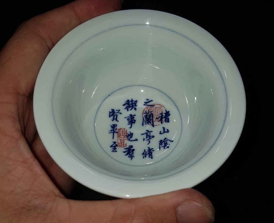 Chén dáng chuông họa pháp Thư Pháp với đường kính miệng 9.5cm. cao 5cm. lành lặn. GL385k