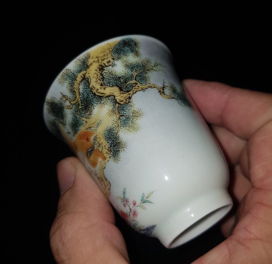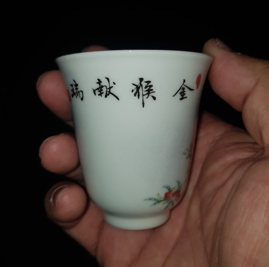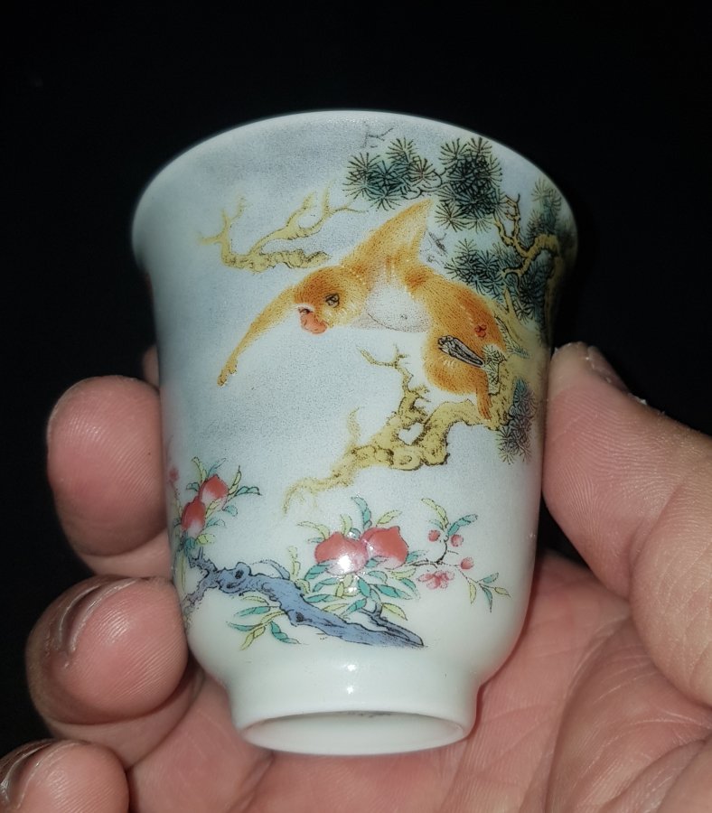 Chén sứ Thanh Hoa điển tích Mỹ Hầu Vương hái đào trường thọ. Độc nhất và duy nhất cho chén sứ Đông Ấm này. Chén cao 6.8cm. miệng 6.5cm. Lành lặn GL450k