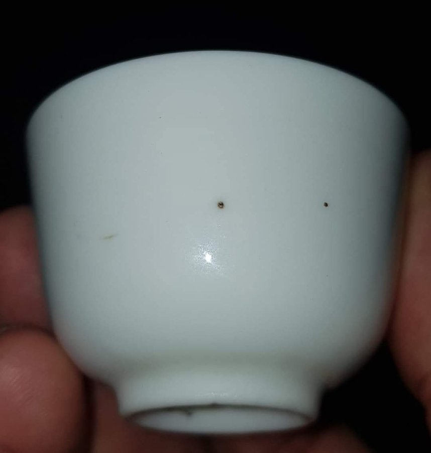Chén hạt mít sứ bạch định chuẩn cổ , dưới đáy có đánh dấu. Chén miệng 5.5cm. cao 4cm. GL550k