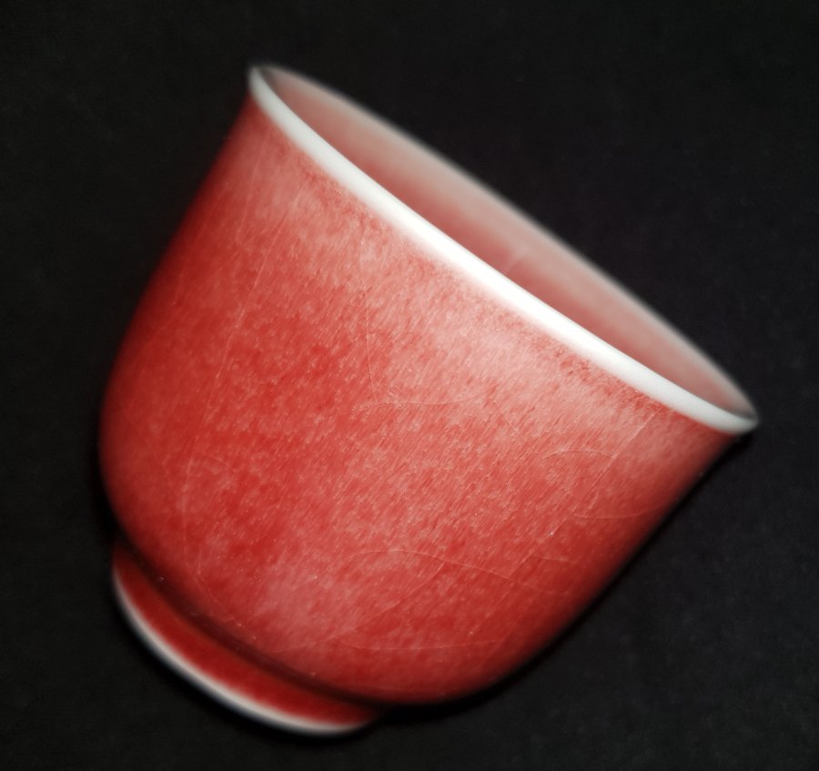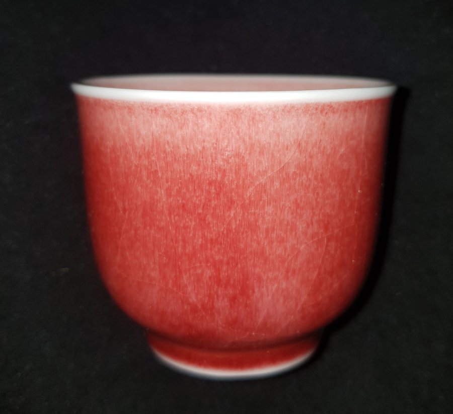 Chén sứ men thúy hồng dáng cổ điển với sắc thúy hồng huyền ảo cuốn hút. Chén được nung già lửa tạo ra sắc độ thúy hồng đặc trưng. Chén nhỏ miệng chỉ 5.5cm. cao 4.5cm. lành lặn. GL295k