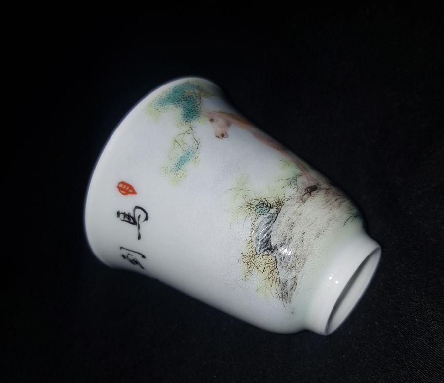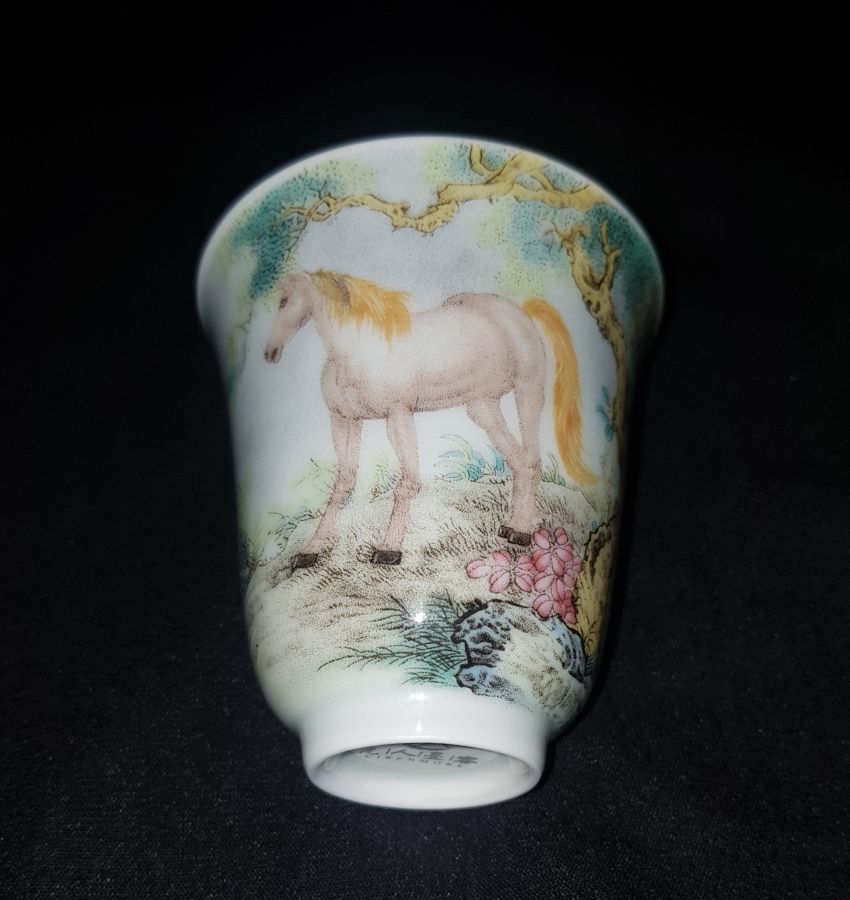 Chén sứ màu sứ Thanh Hoa đề thư pháp Mã Đáo Thành Công.Chén miệng 6.5cm. cao 6.8cm. GL790k