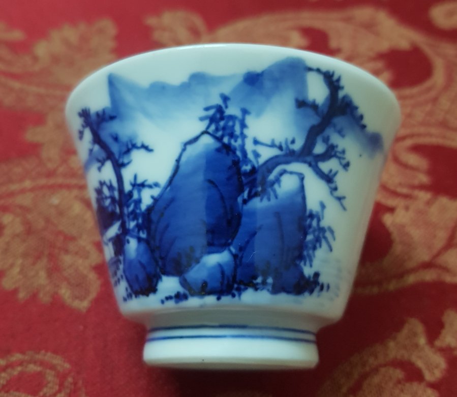 Chén trà cổ men lam chàm hồi GL979k