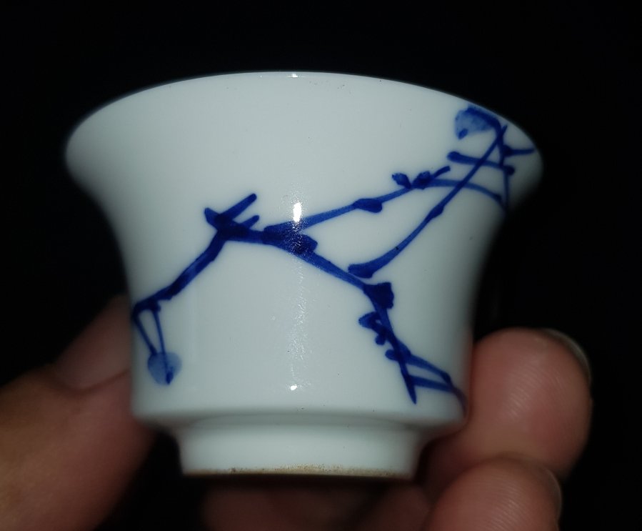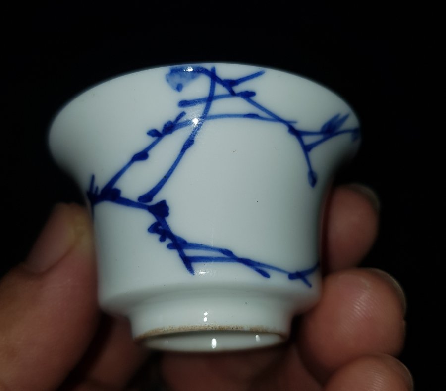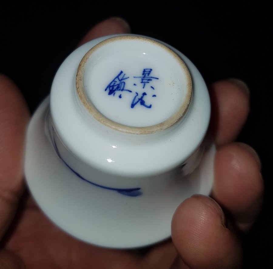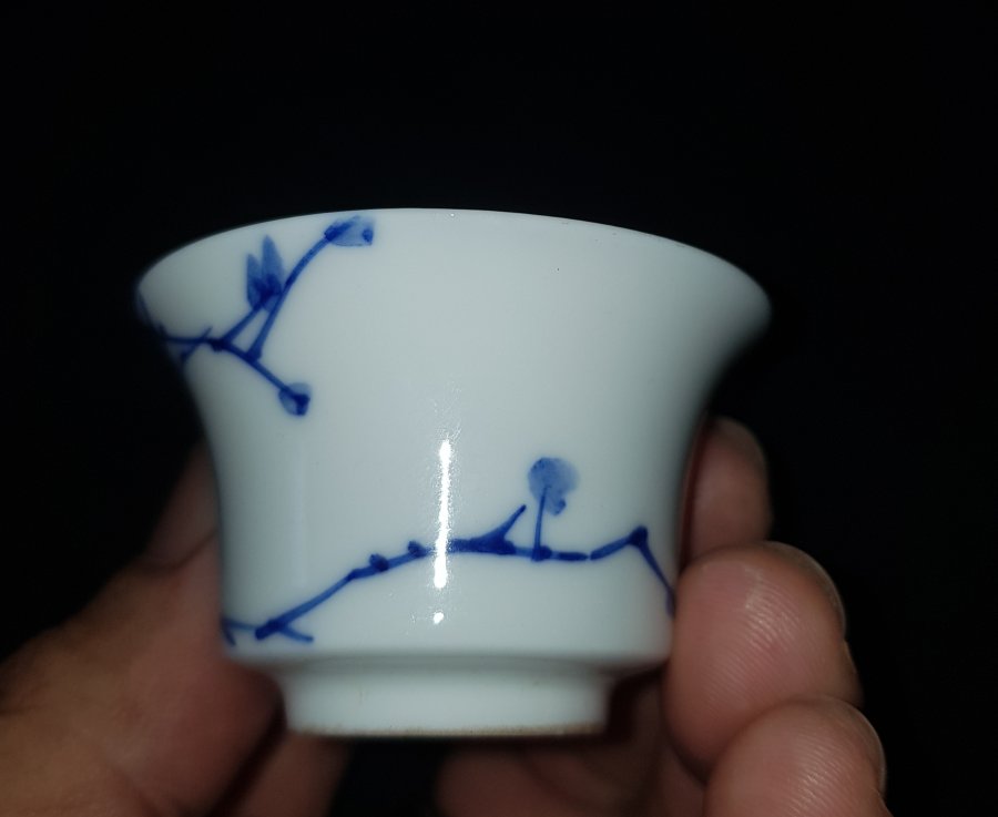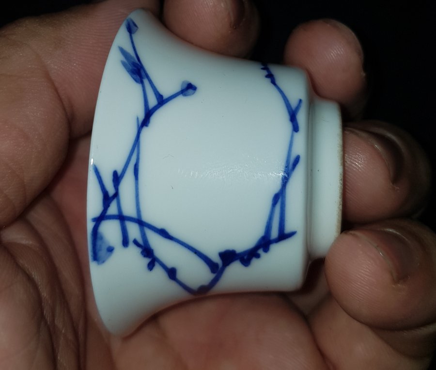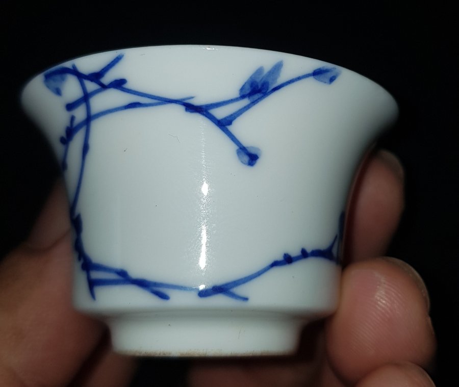 Nét đẹp cuốn hút của chén trà xưa sứ vỏ trứng men lam chàm hồi trứ danh . Chén miệng 5cm. cao 3cm. lành lặn. GL950k